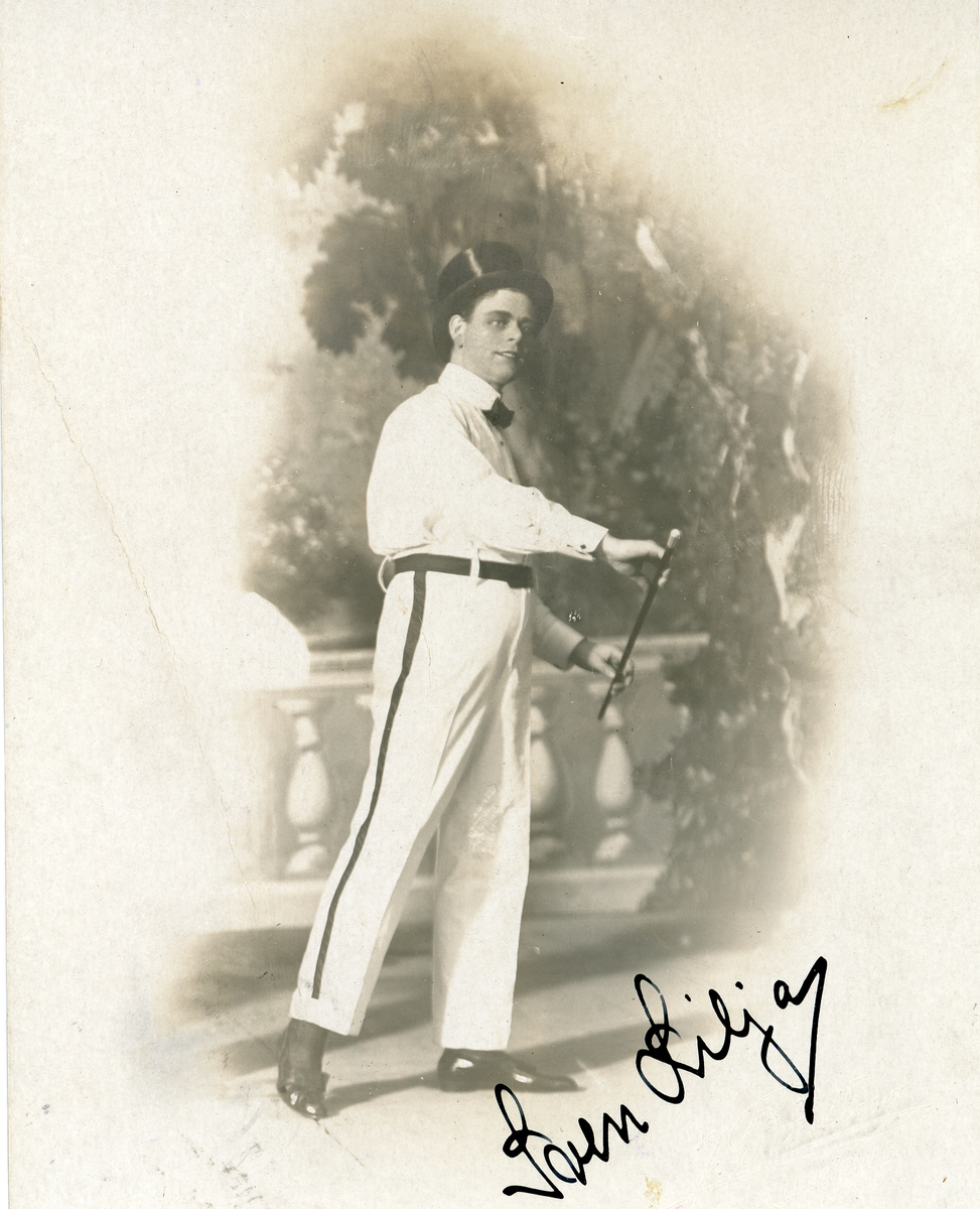 Foto av Sven Lilja (enligt text på fotografiet). Text på baksidan: "Kalmar d. 4. 12. 18. Hej! och hjärtligt tack för länge sedan. Med många hälsningar till dig och övriga bekanta. Sven". Adresserat till: Herr Ola Svensson?