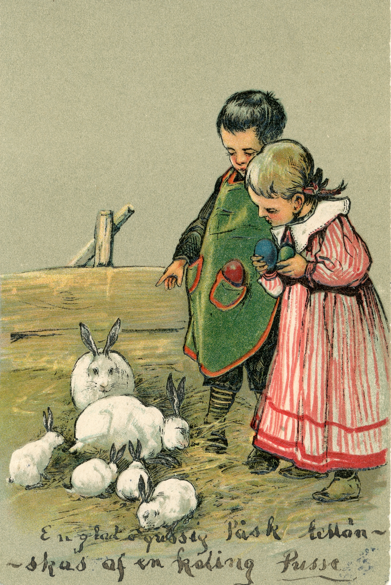 Text på framsidan: "En glad å gussig? Påsk tillönskas af en ... Puss".