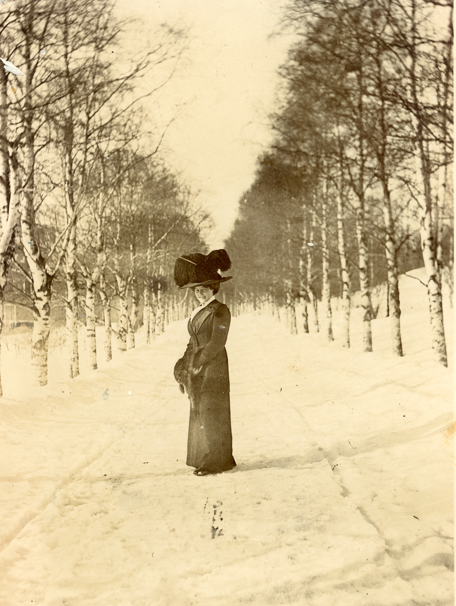 Titel: Foto av syster Elin i en plymfylld hatt (enligt text skriven i albumet).