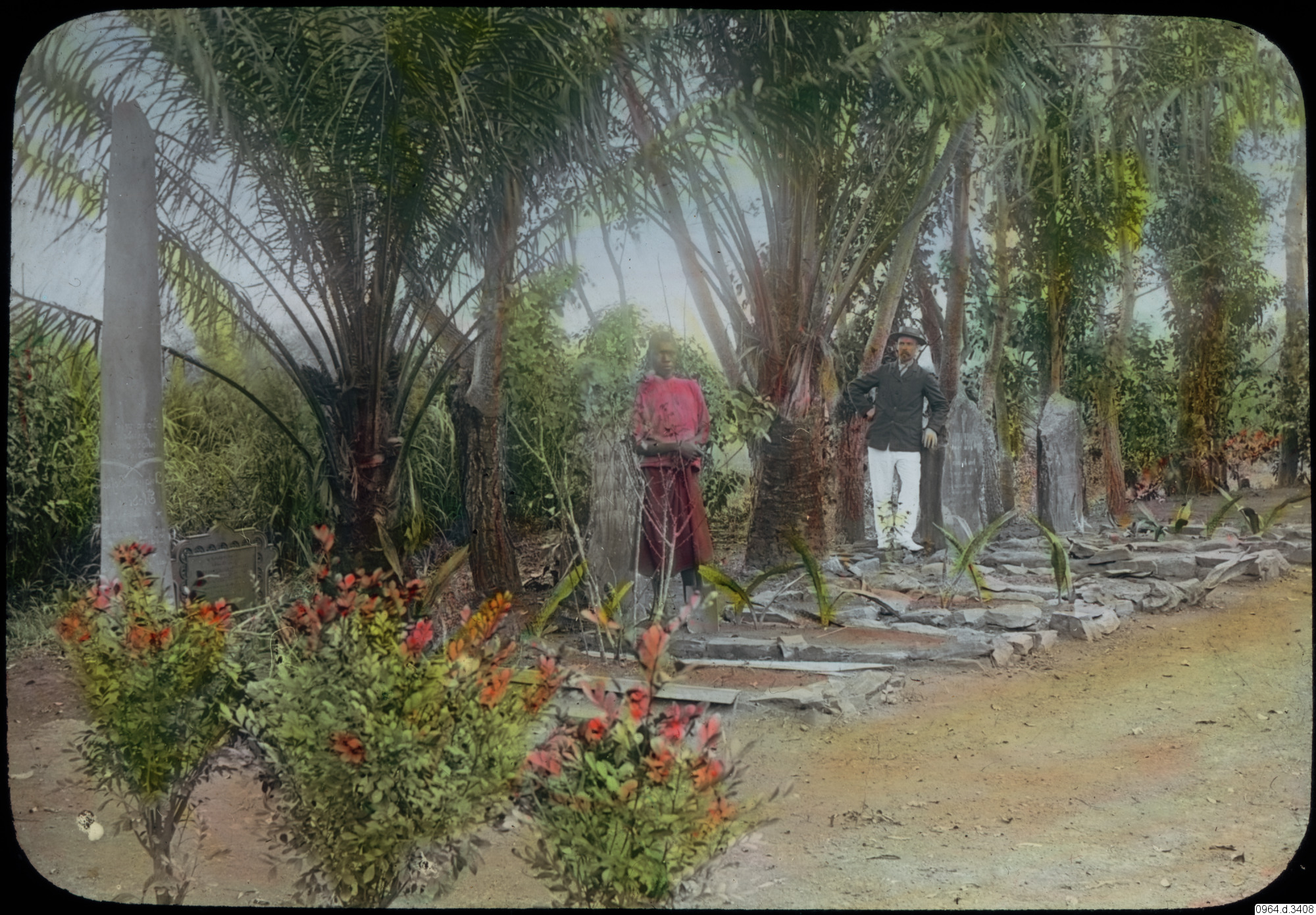 grav, växter, gravsten, palmer, personer, missionär, fotografi, photograph