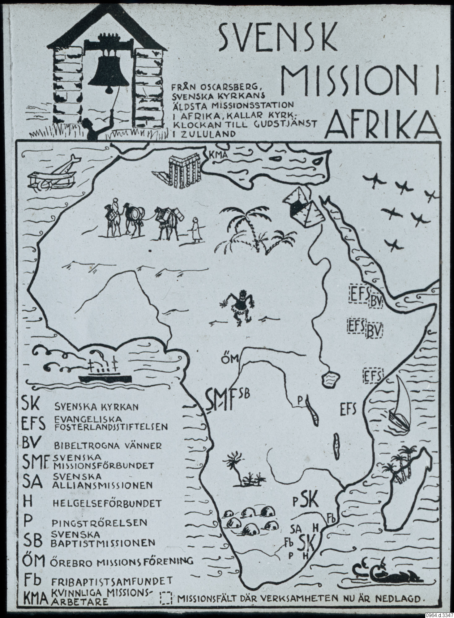 Svensk mission i Afrika, karta och text. Organisationer.