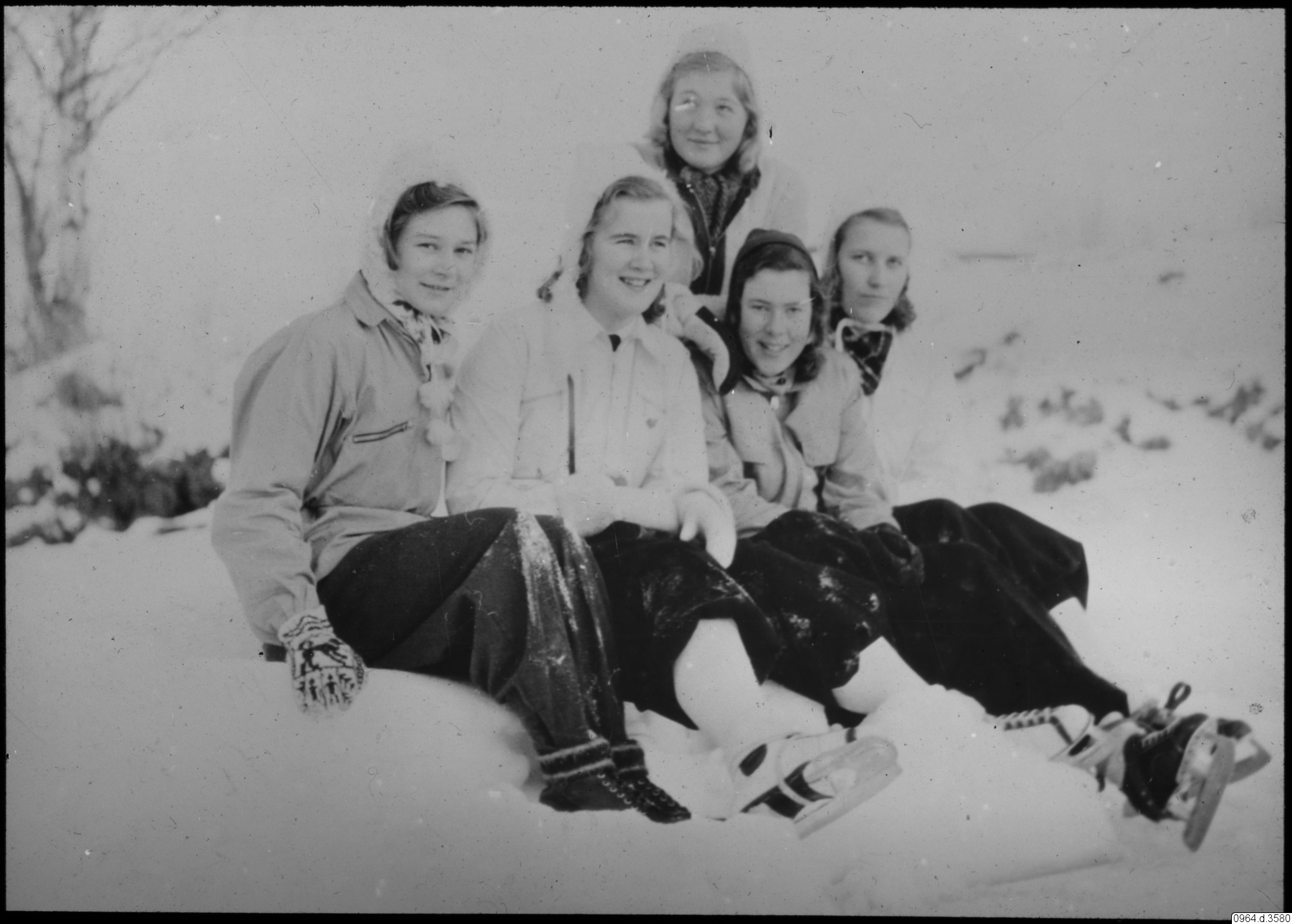 flickor, snö, vantar, vinterkläder, skridskor, gruppbild, fotografi, photograph