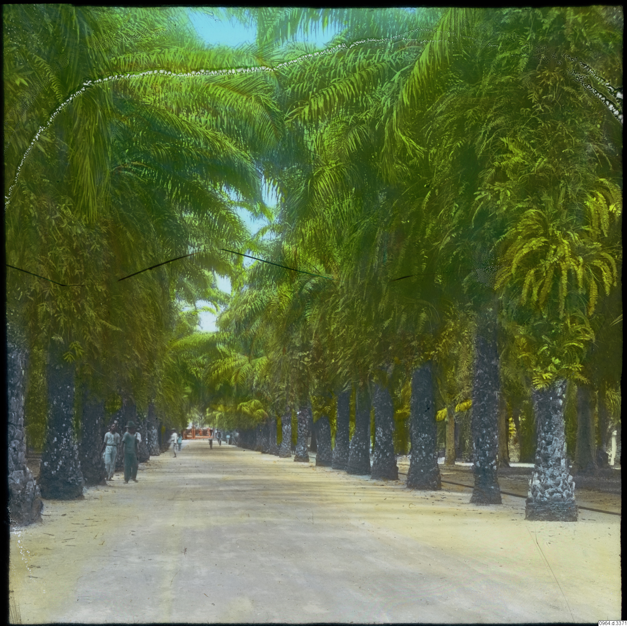 gata, grindar, människor, palmer, staket, allé, fotografi, photograph
