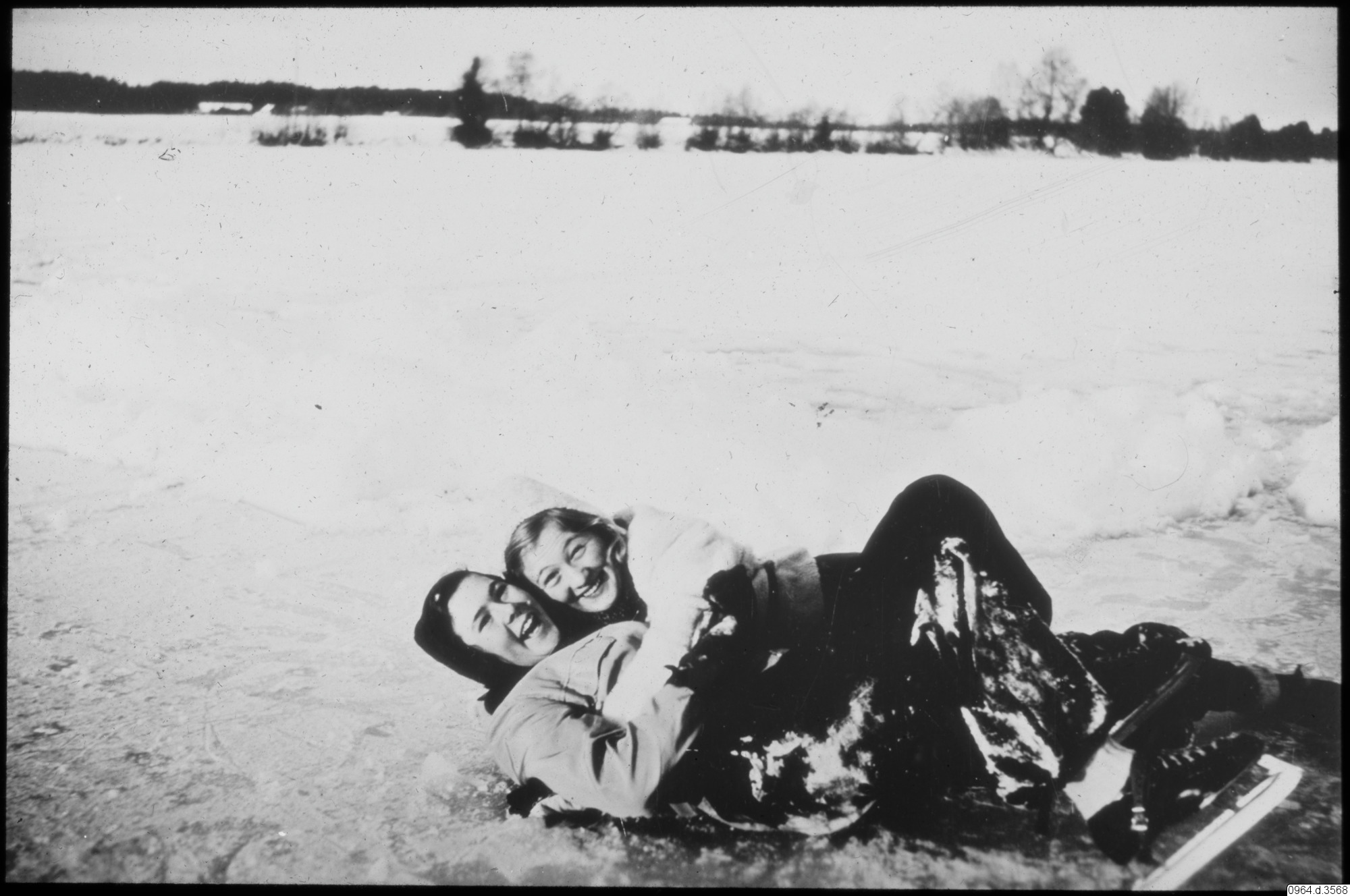 landskap, skridskor, snö, vinterkläder, flickor, is, fotografi, photograph