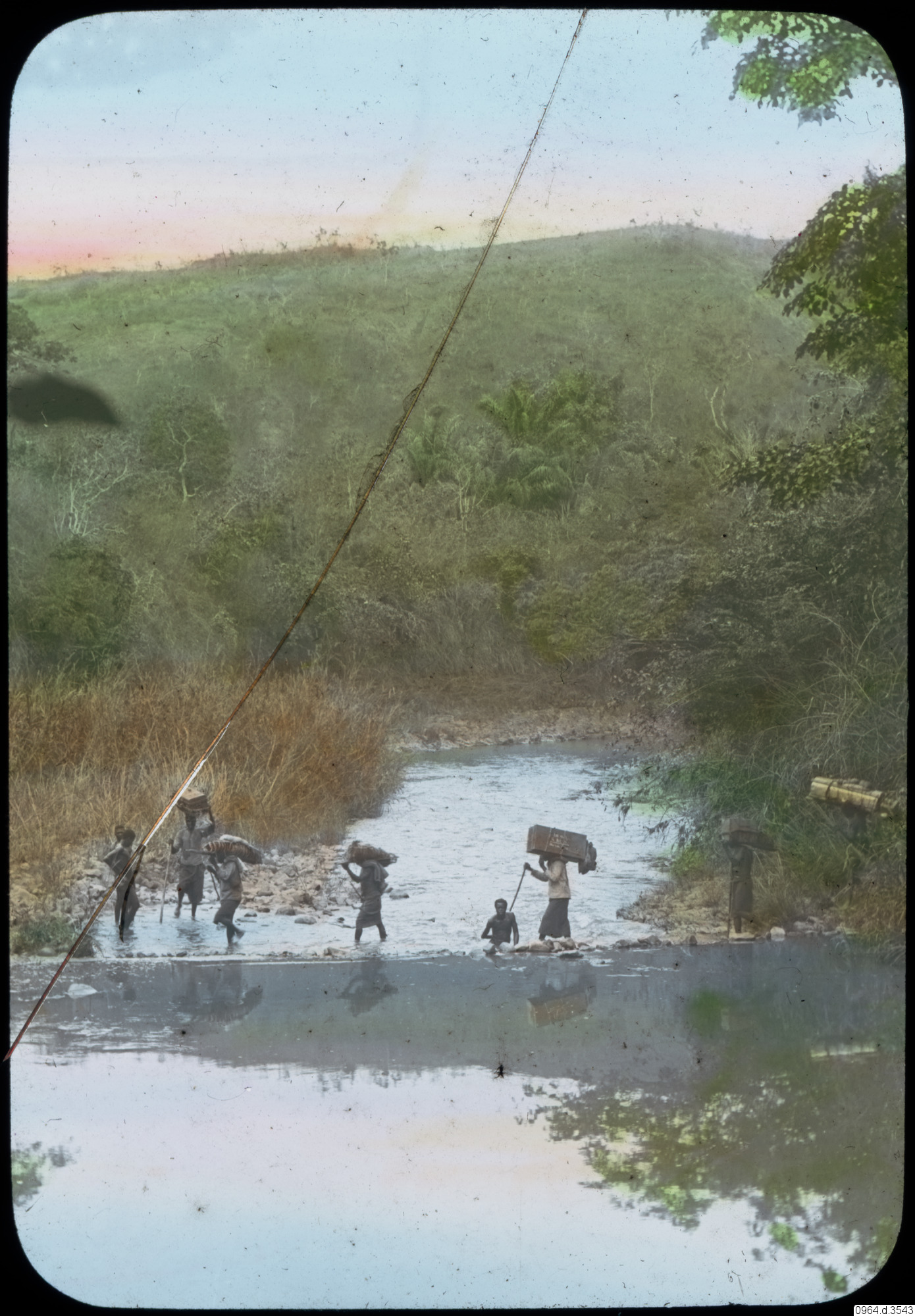 gruppbild, resa, vattendrag, bärare, gods, skog, fotografi, photograph