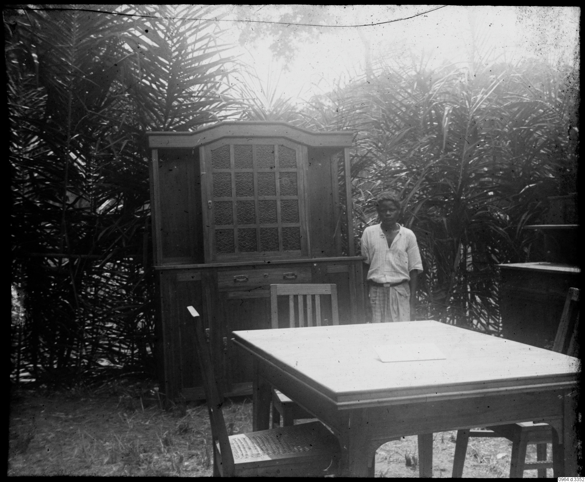 man, palmer, möbler, bord, skåp, fotografi, photograph