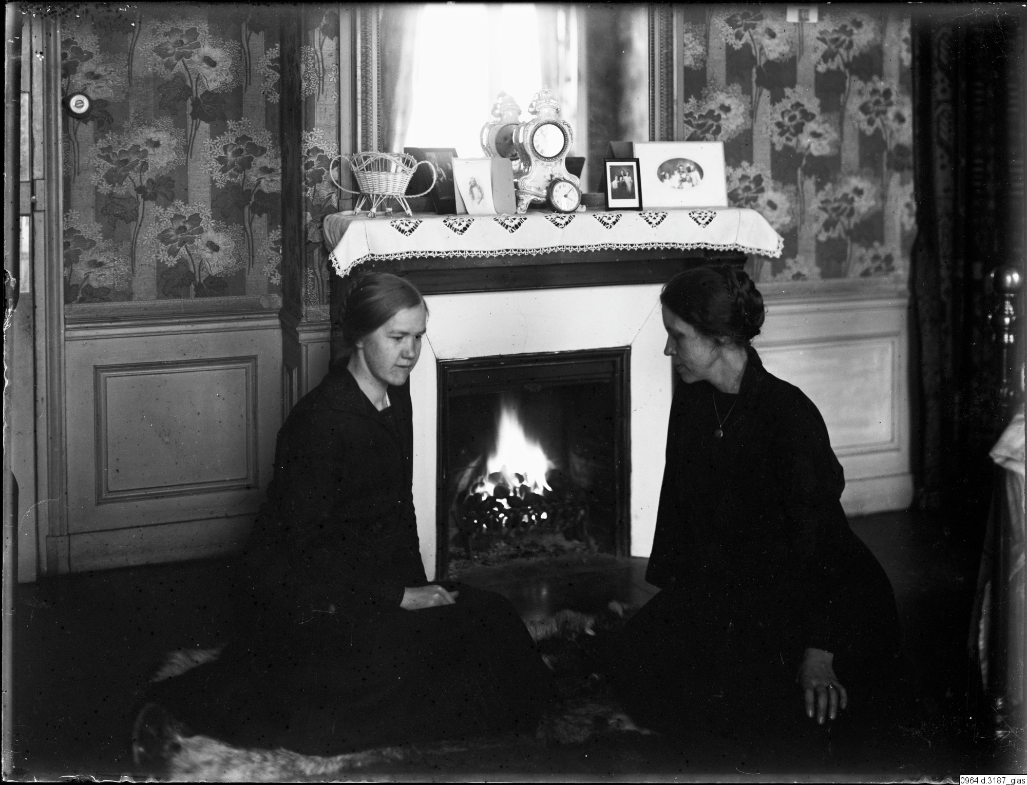 porträtt, klocka, kvinna, spiselkrans, interiör, eldstad, fotografi, photograph
