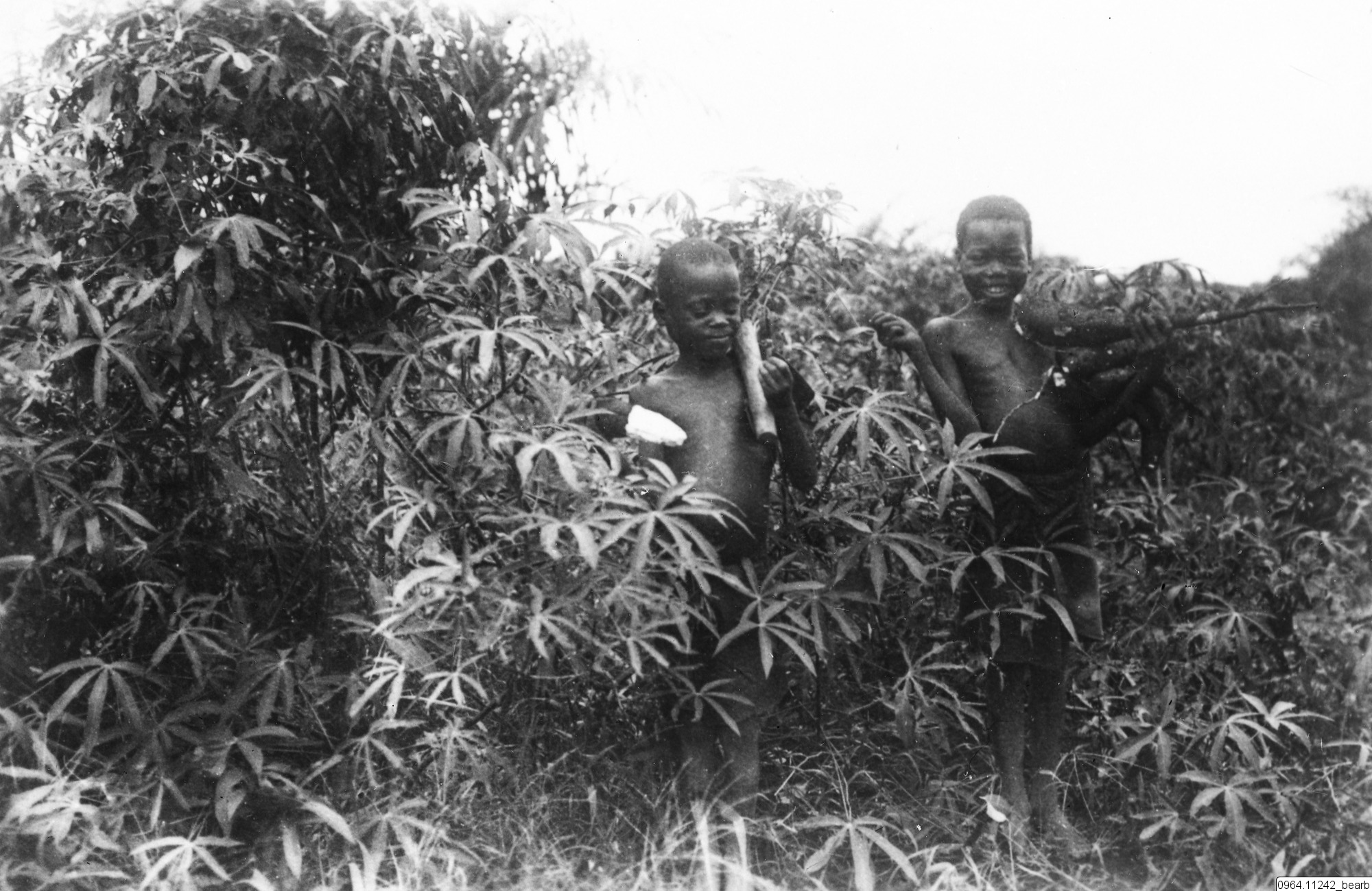 Två pojkar bland växter.