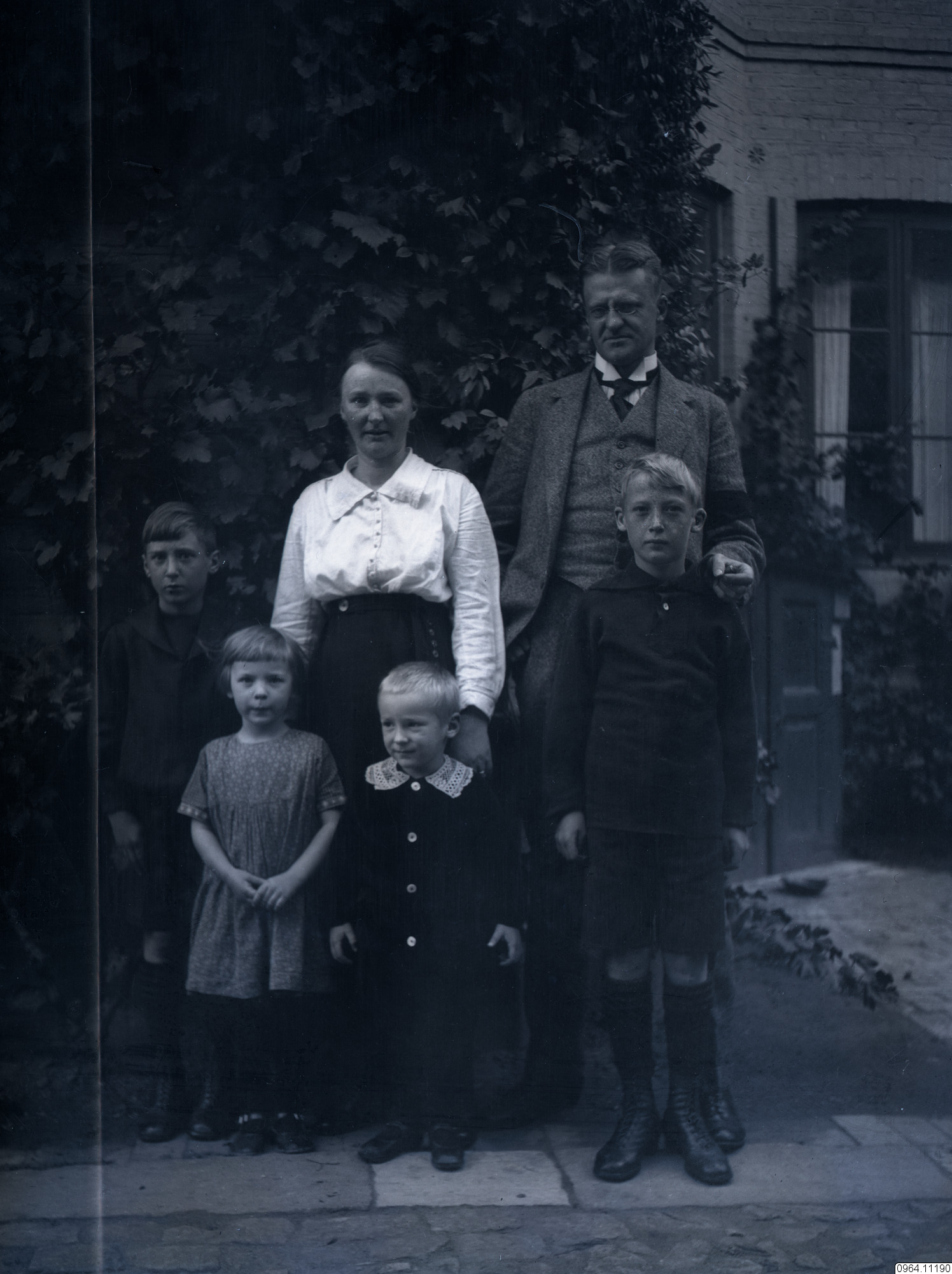 Man och kvinna och fyra barn. Kvinnan är sannolikt Björkdahl.