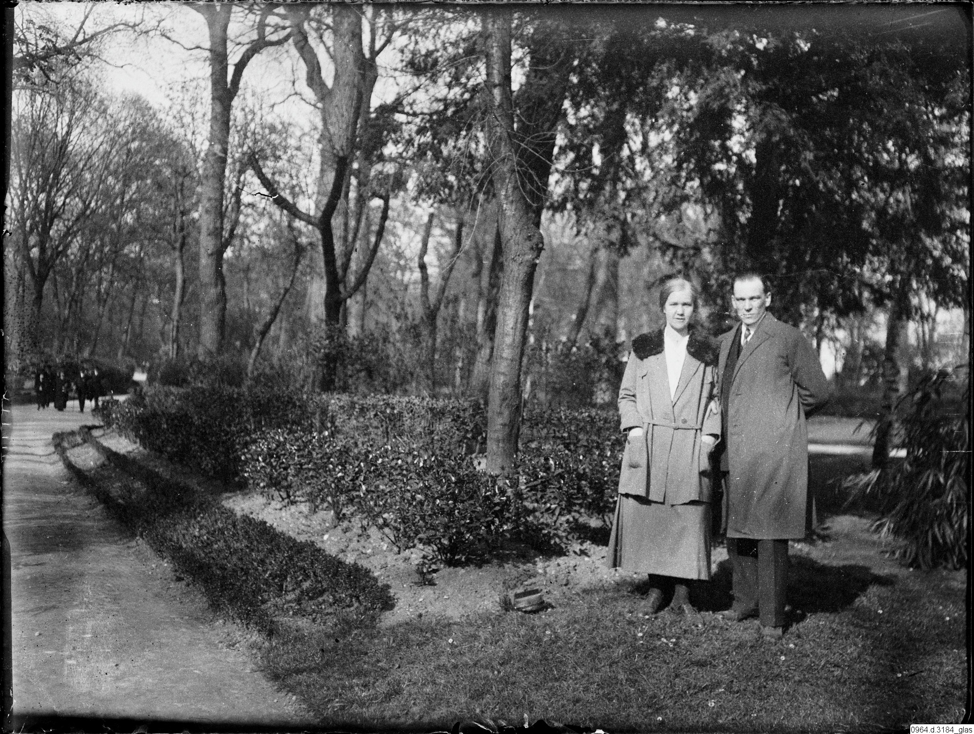 kappa, porträtt, missionärer, kvinna, park, man, fotografi, photograph