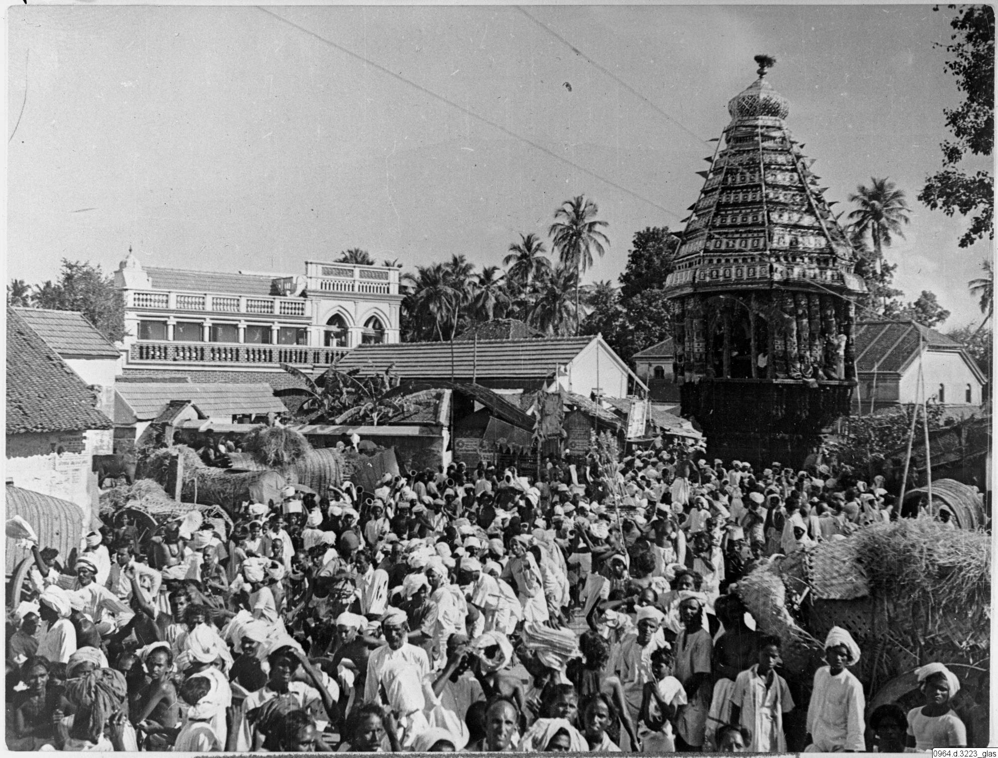 folksamling, vagnar, tempel, palmer, byggnader, gruppbild, fotografi, photograph
