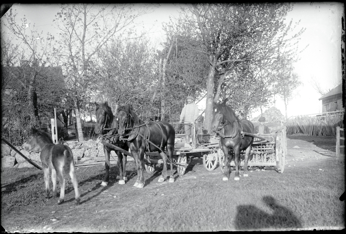 Axel Axelsson och drängen Nils Gustafssonmed häst och vagn