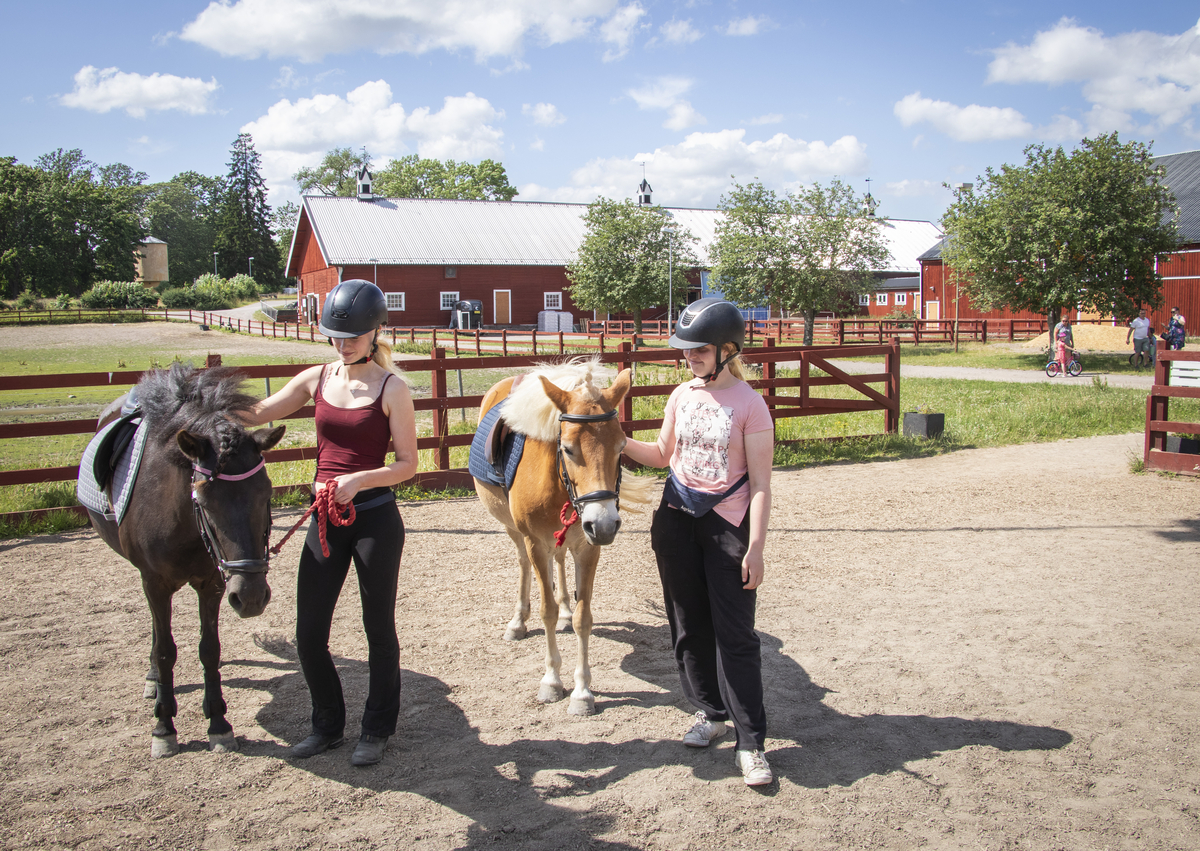 På bilden ser man Matilda Larsson och Bianca Ettelman med hästarna Vilma och Diddi. I juli 2025 arrangeras det ponnyridning vid Vallastallet.
