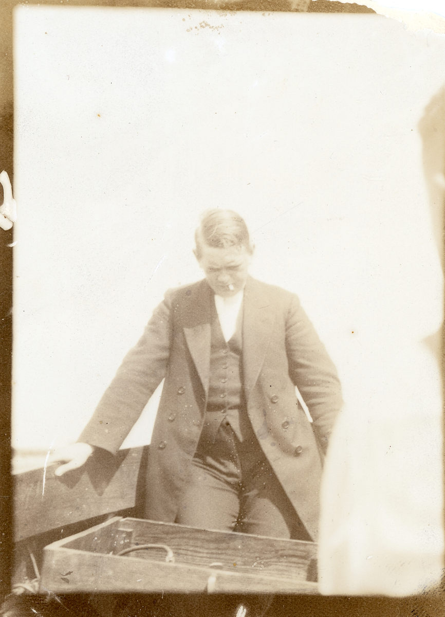Foto av Charles i begrundan över båten som Olle var delägare i (enligt text skriven i albumet).
