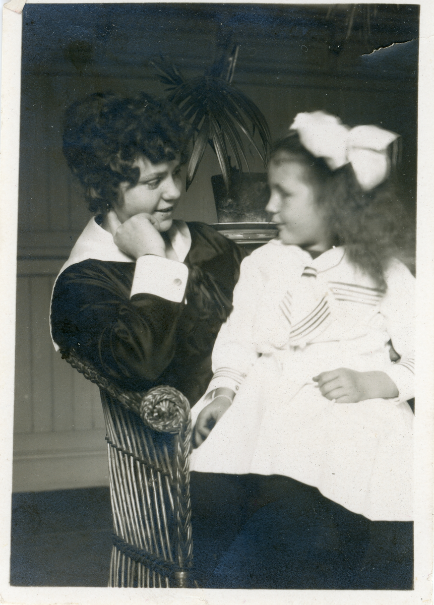 Foto av servitris med mitt barn i knät (enligt text skriven i albumet).
