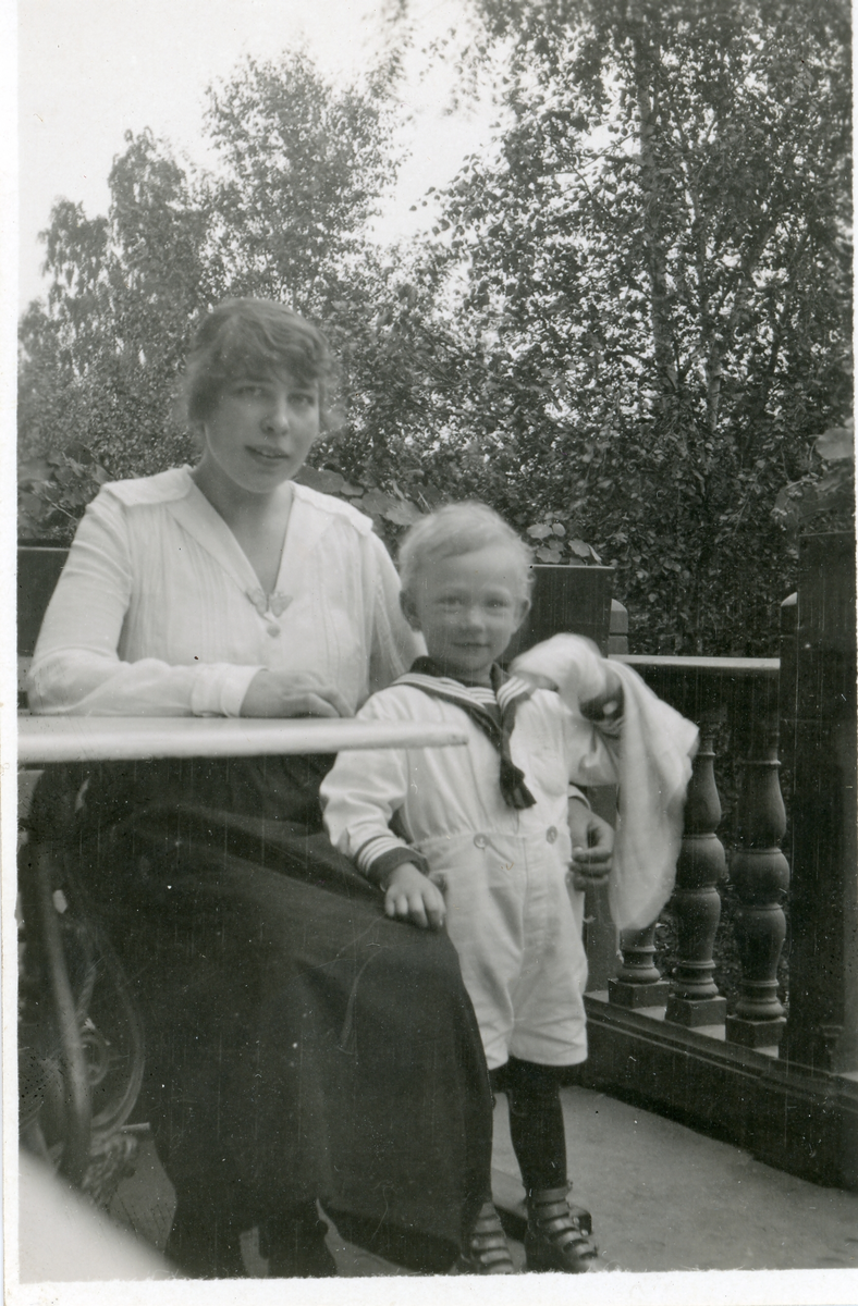 Foto av servitris med mitt barn bredvid sig (enligt text skriven i albumet).