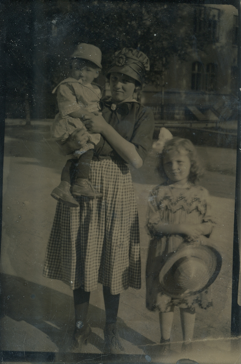 Foto av Teres med sina skyddslingar Olof och Inga (enligt text skriven i albumet).