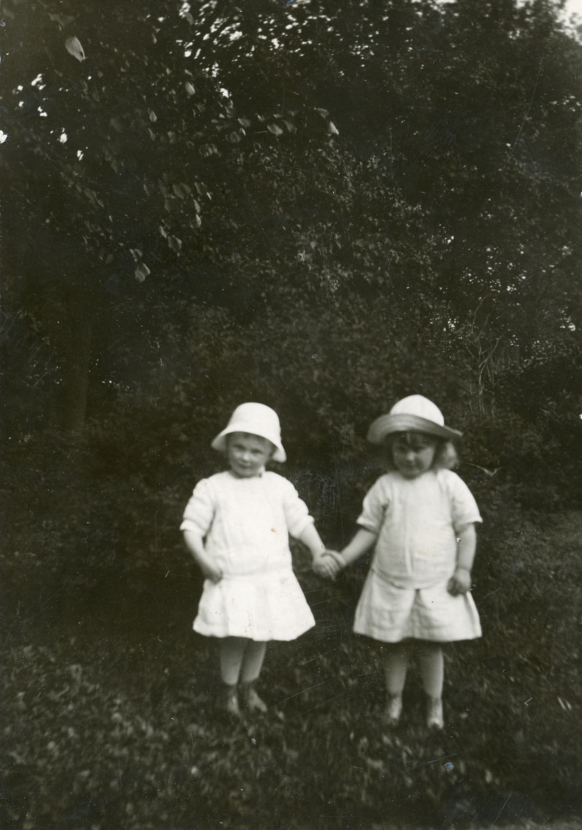 Foto av två små flickor Inga o Torborg (enligt text skriven i albumet).