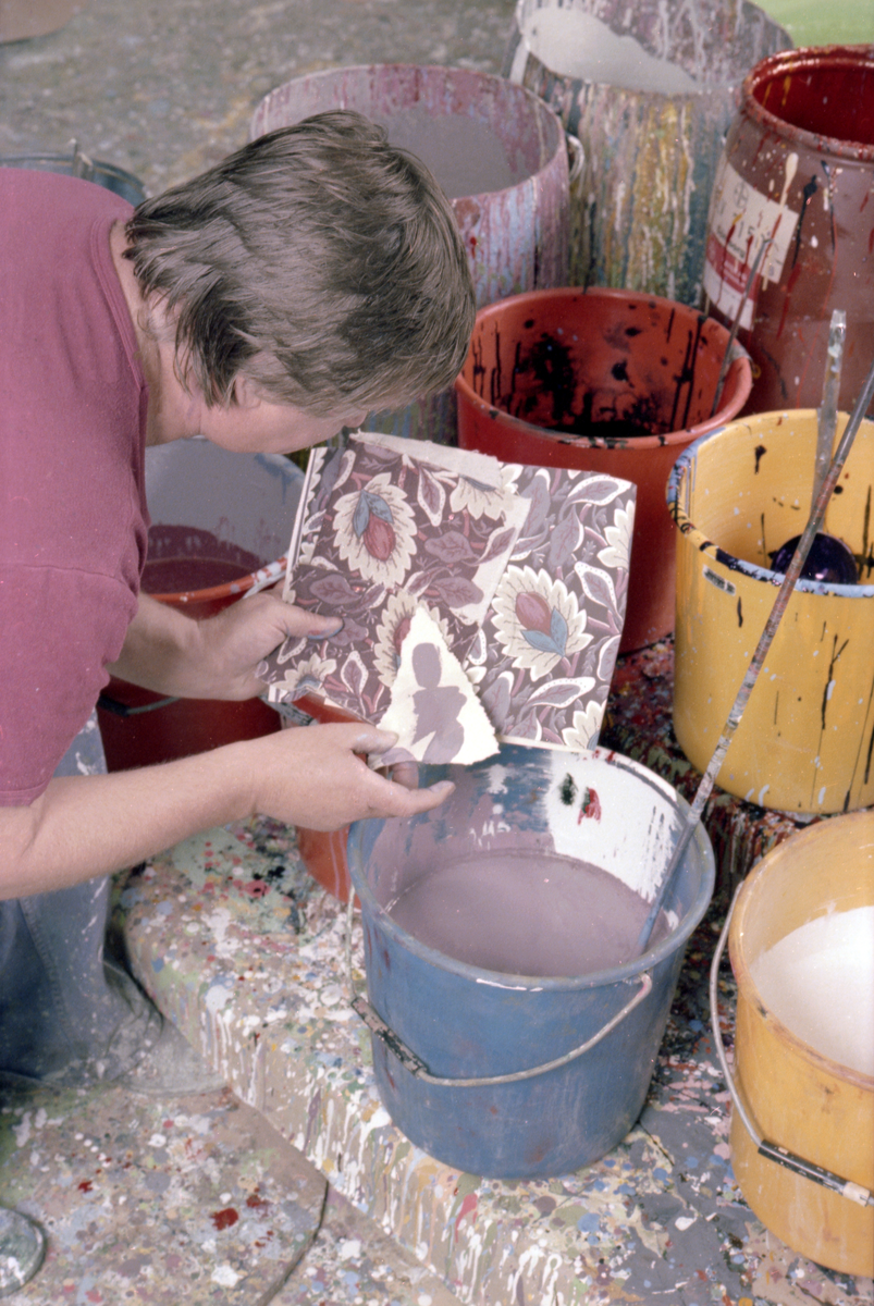 Arbete med färg till tapettryck vid Durotapet AB.