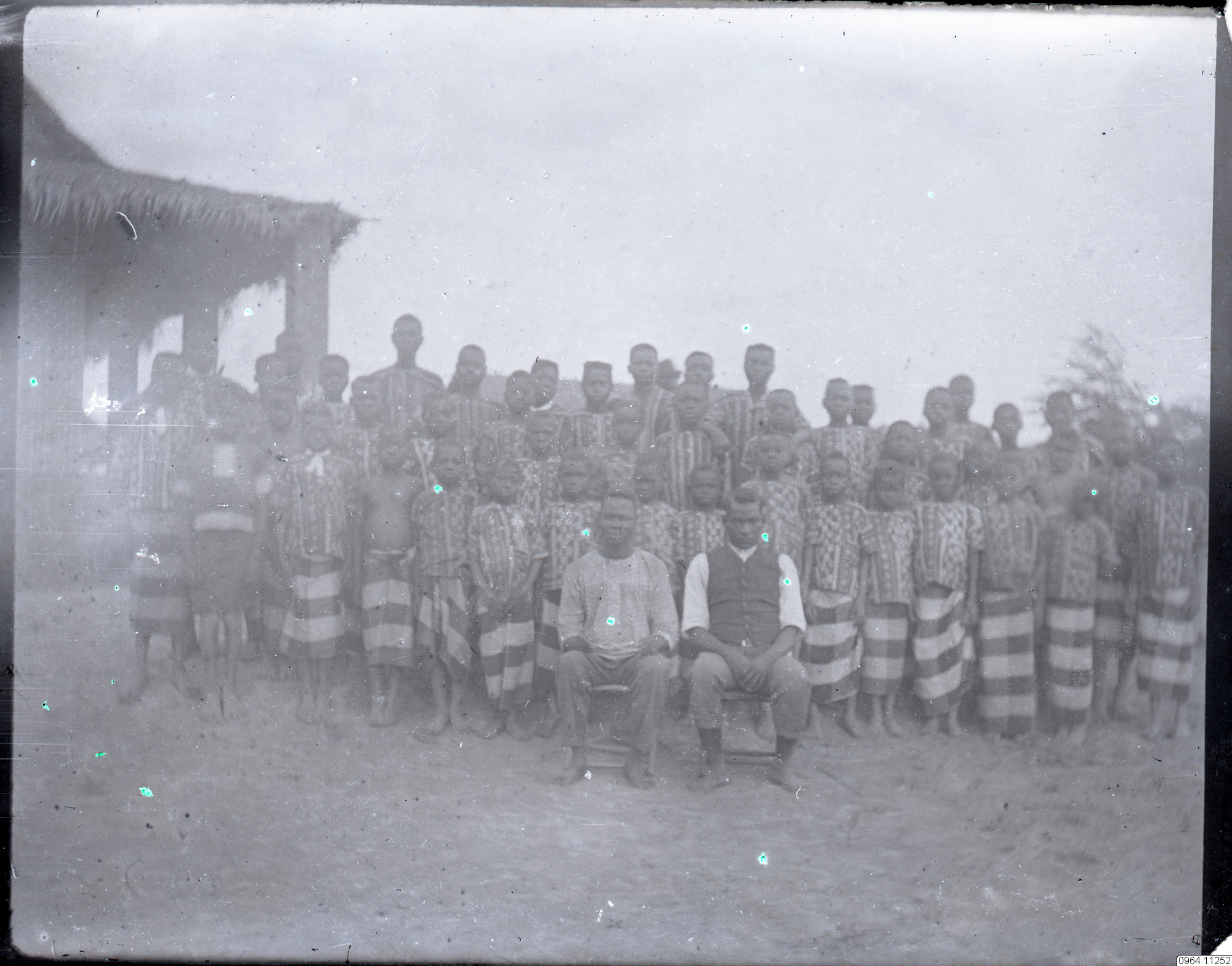 Gruppbild med barn och längst fram sitter två vuxna, sannolikt lärare.
