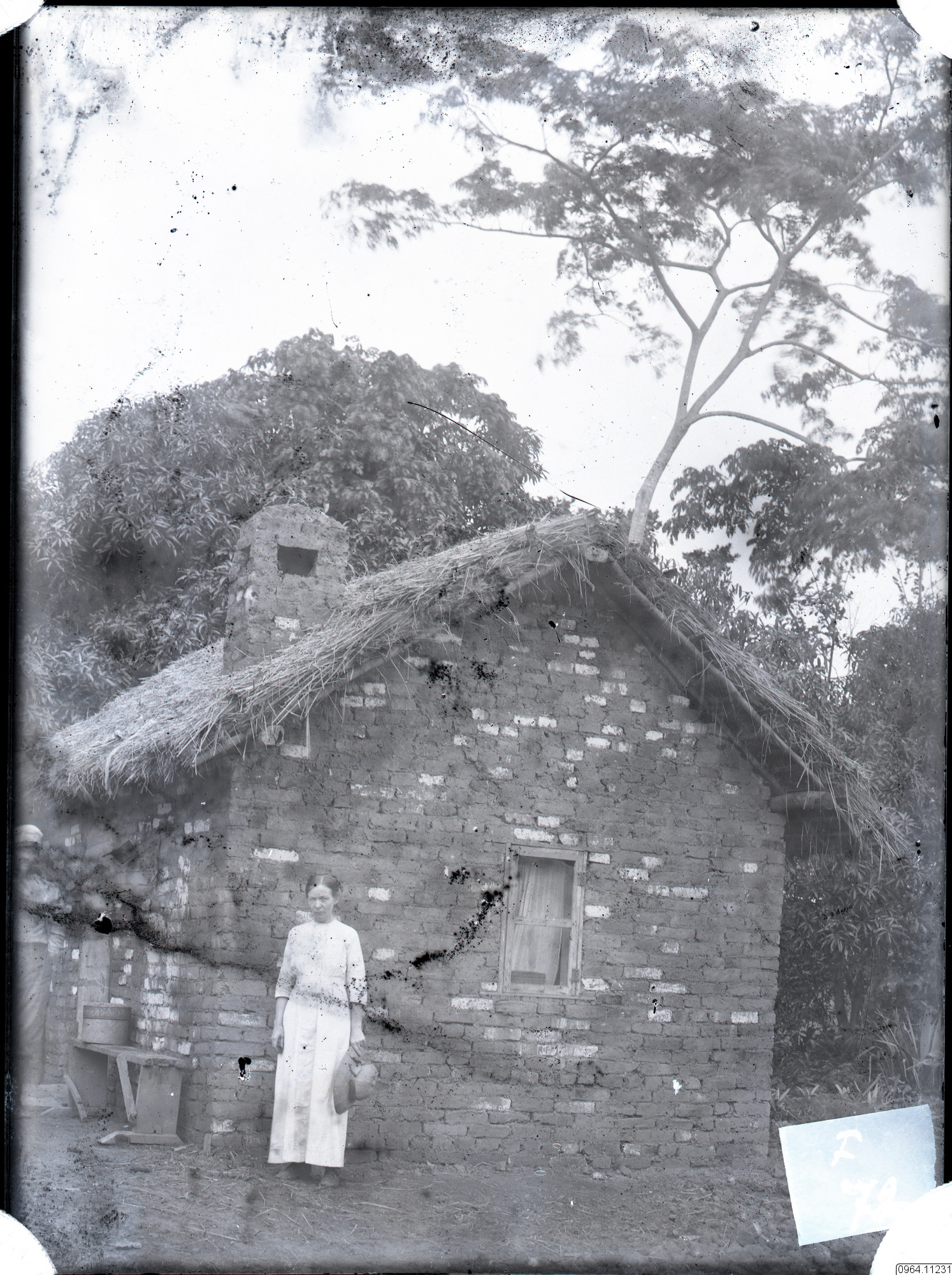 Hildur Flodén med hatt i handen utanför tegelbyggnad.