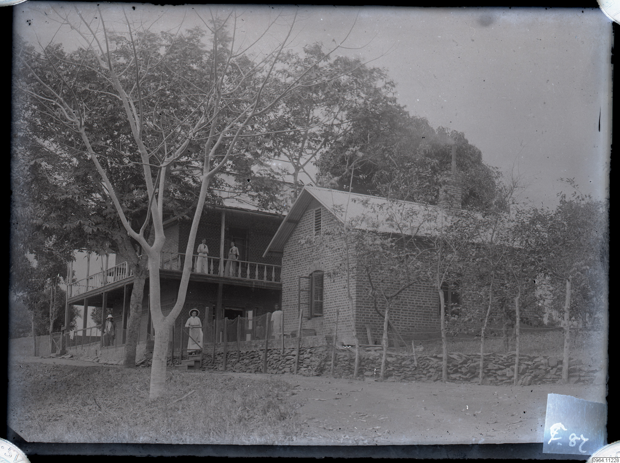 Stationshus/boningshus, Mukimbungu med missionärer utanför (identifierad utifrån staket).