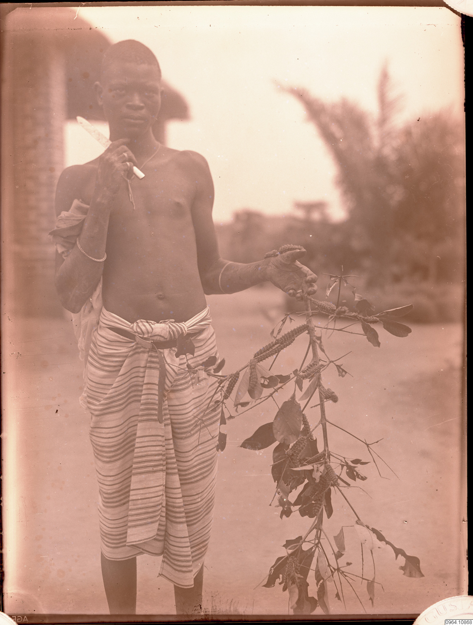 Man med växt med larver.