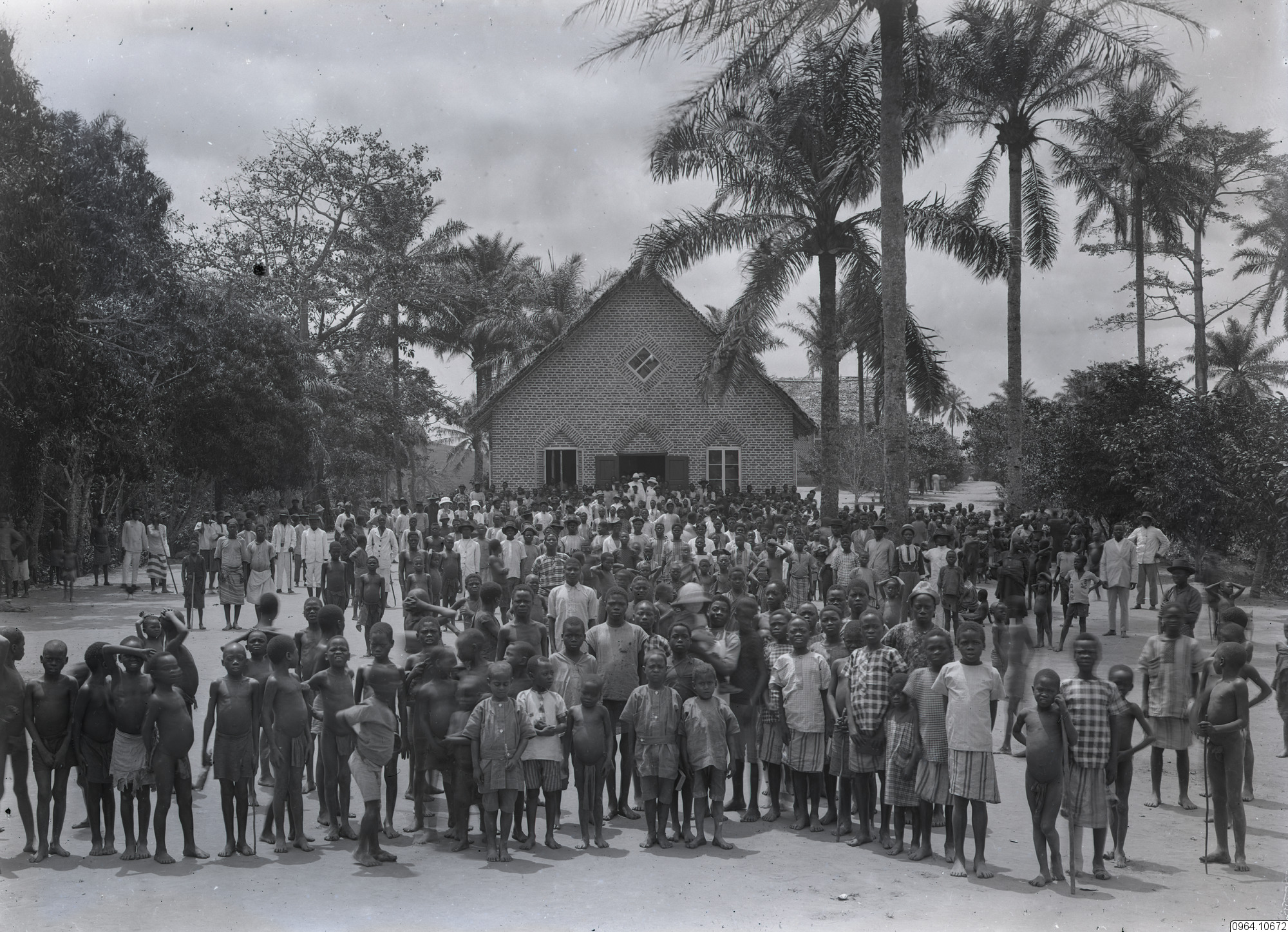 Högtidsskara utanför kyrkan. Jämför 0964.8863 tagen vid samma tillfälle.