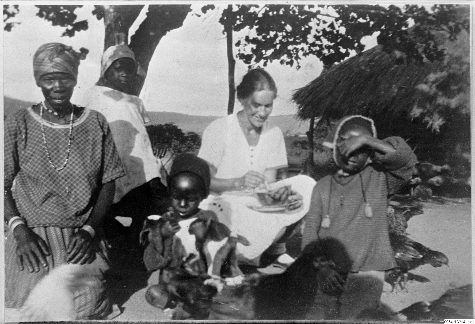 barn, mat, hydda, höna, gruppbild, kvinna, fotografi, photograph