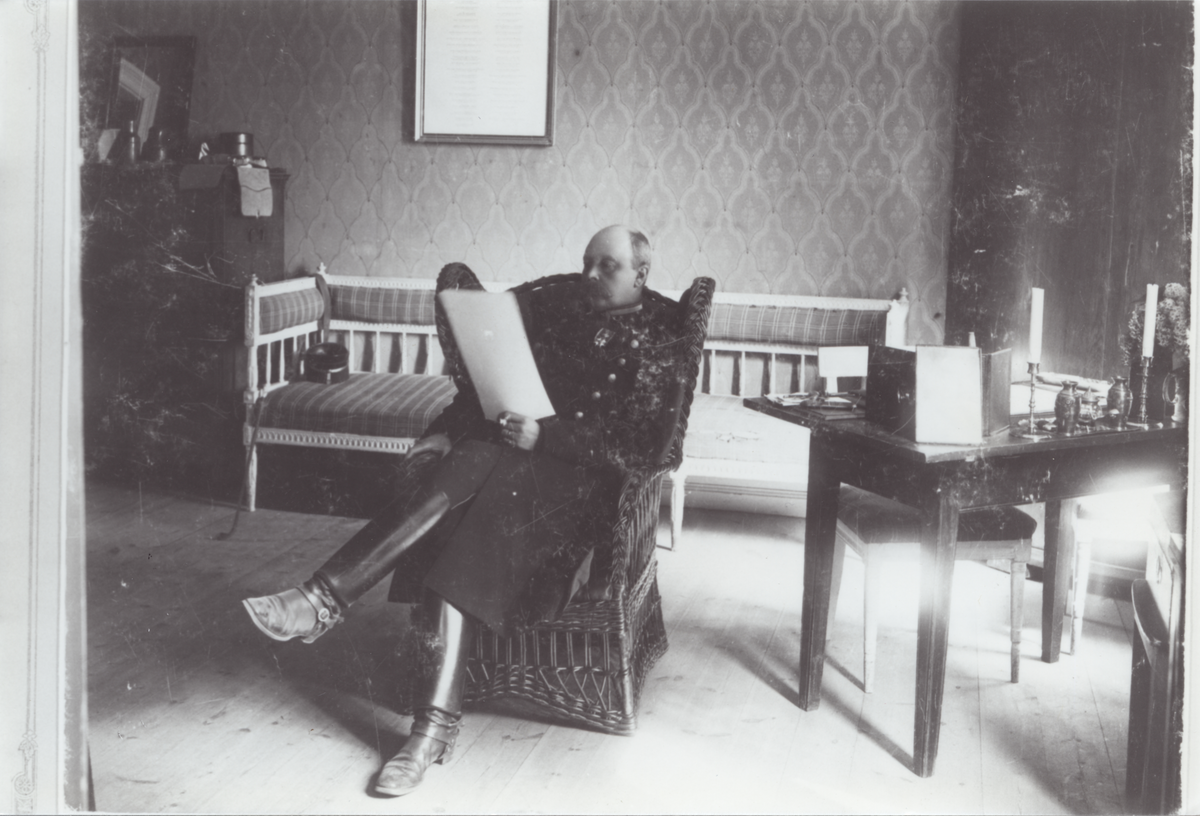 Titel: Officer i fåtölj.