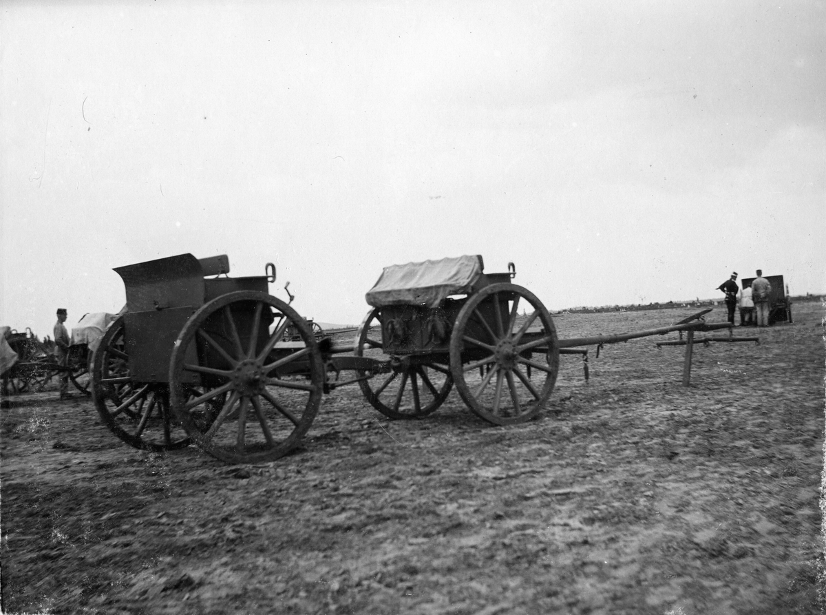Titel: Militär vagn uppställd på övningsfält.