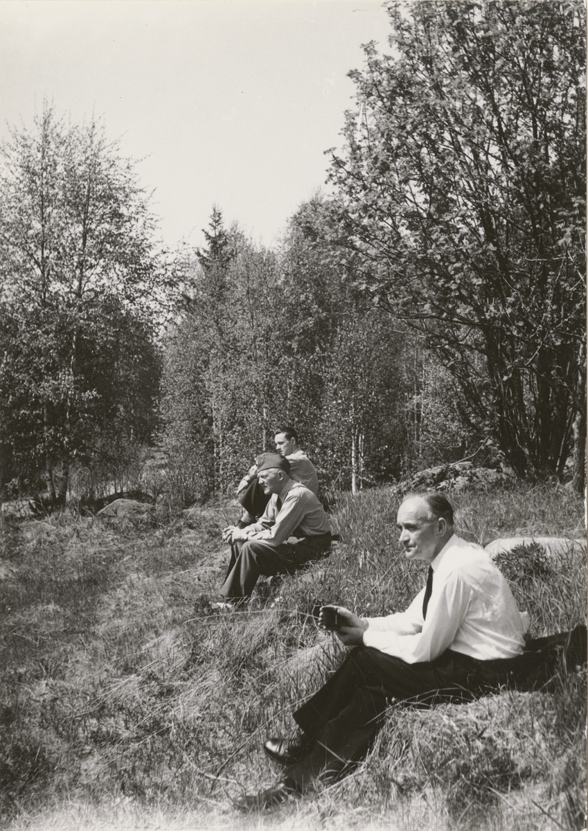 Paus i grässlänt, Intendenturfältövning Bollnästrakten, 1958.