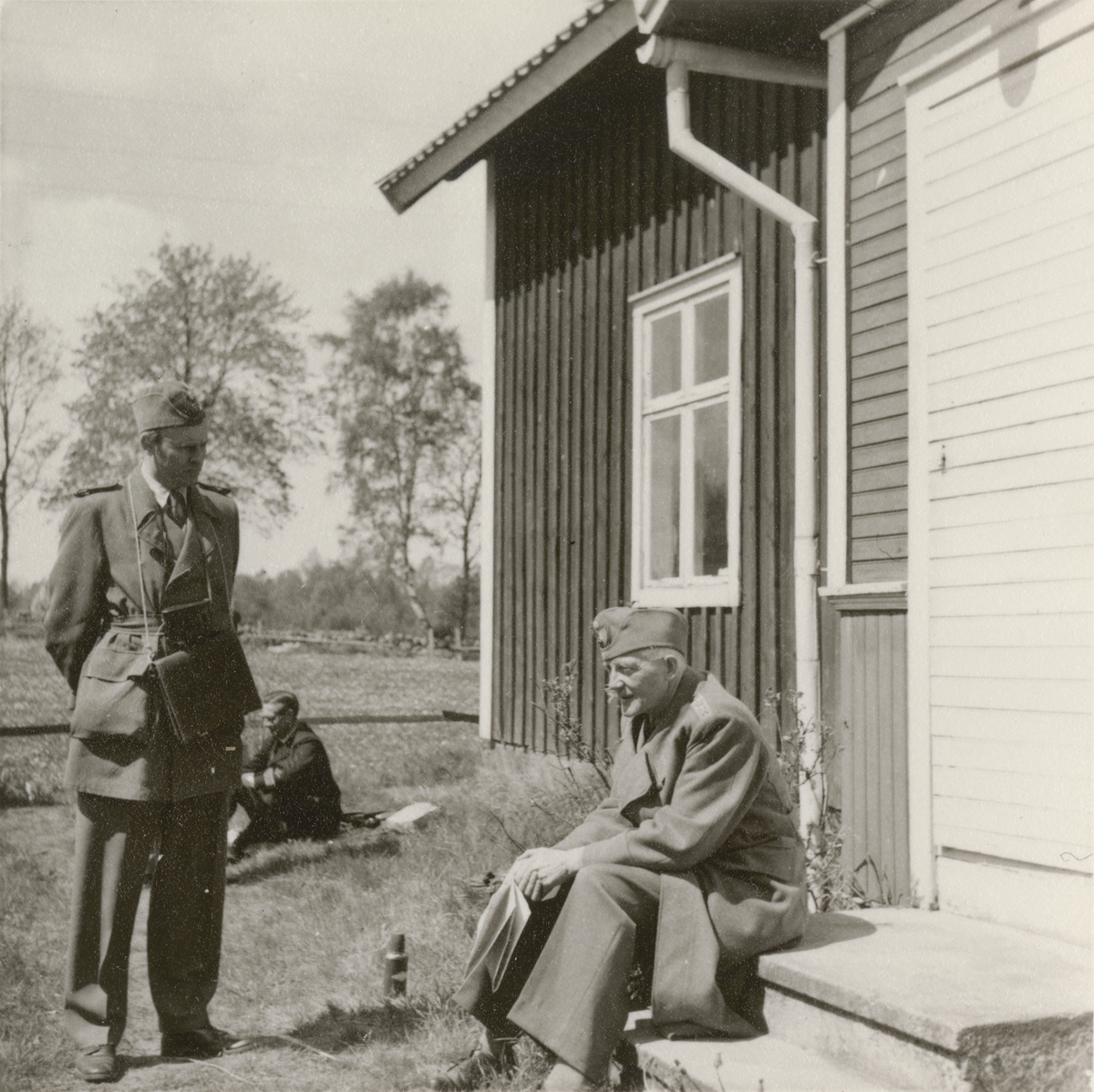 Kafferast vid trähus, Intendenturfältövning våren 1957.