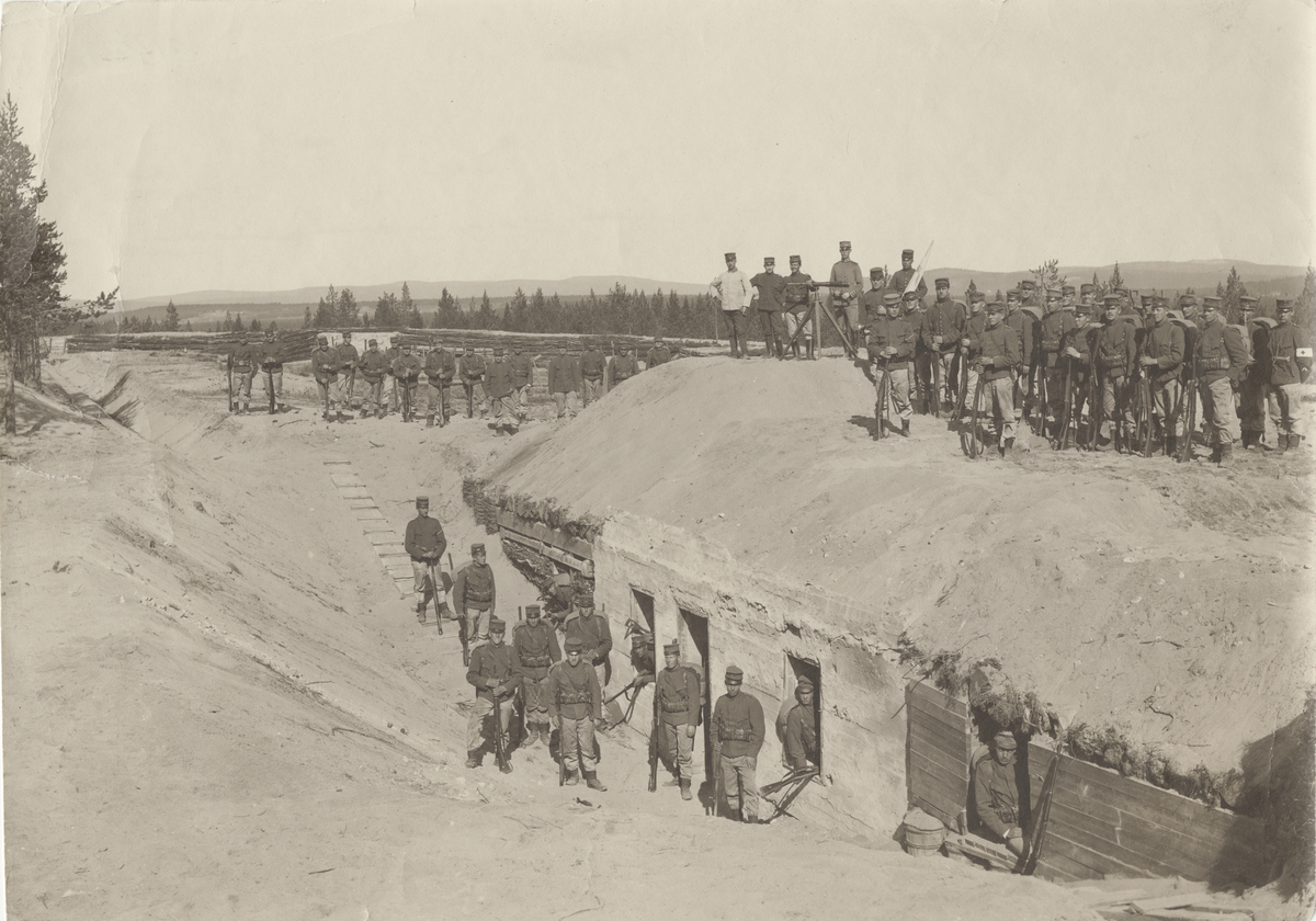Övningar i skyttevärn på Vaberget, Karlsborg.