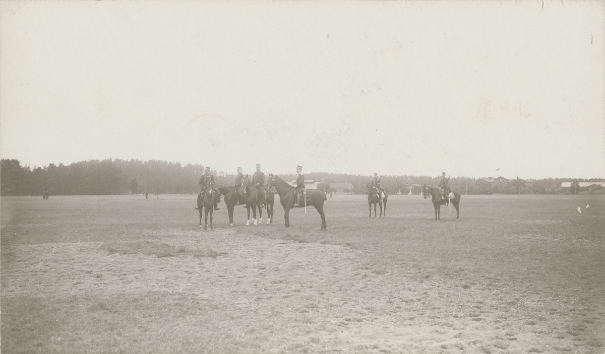 Officerare till häst på stort fält, troligen Rönneslätt.