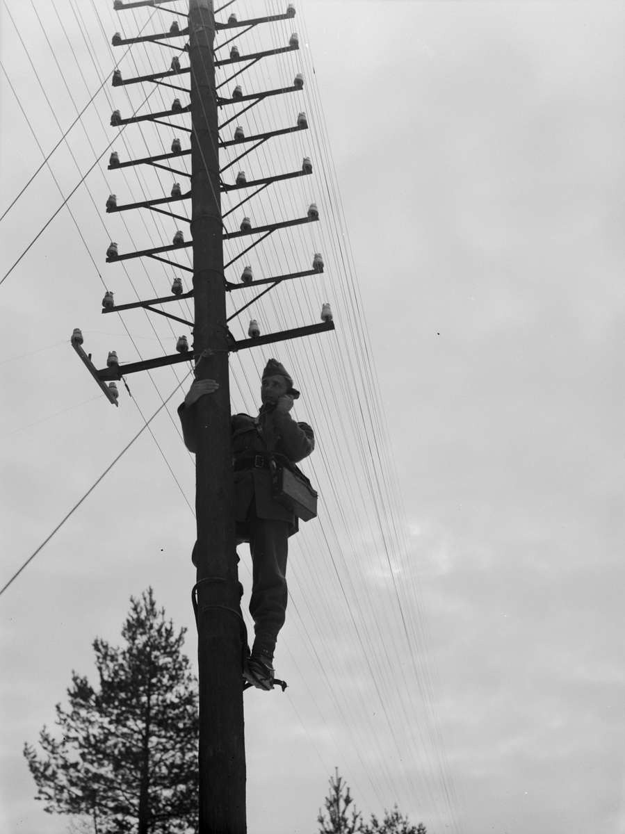 Frivillig befälsutbildning (FBU). FBU-utbildning i Rättvik. Korporal Hejdesten kontrollerar nätförbindelsen. Kurser för signalister pågår.