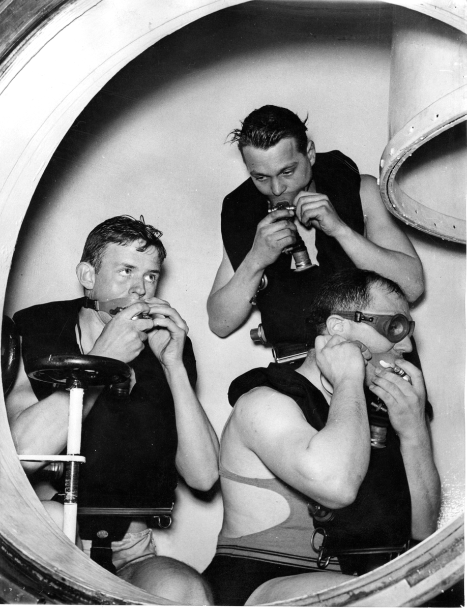 Titel: Tre män med andningsmask.