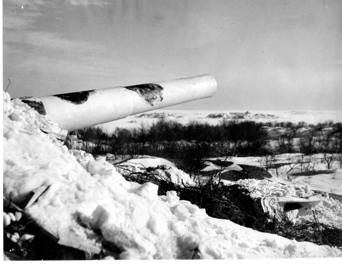 Titel: Kamouflerad grov kanon i fjällandskap.