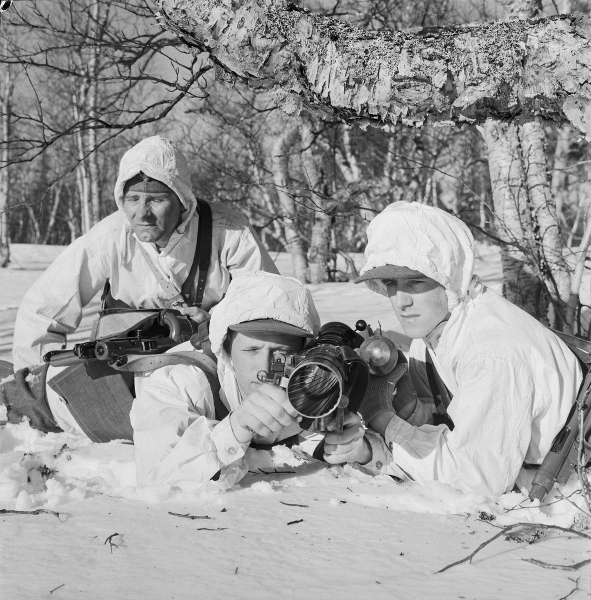 Frivillig befälsutbildning (FBU) i Ånn, 1955. Soldater vid en raketgevär under övning.