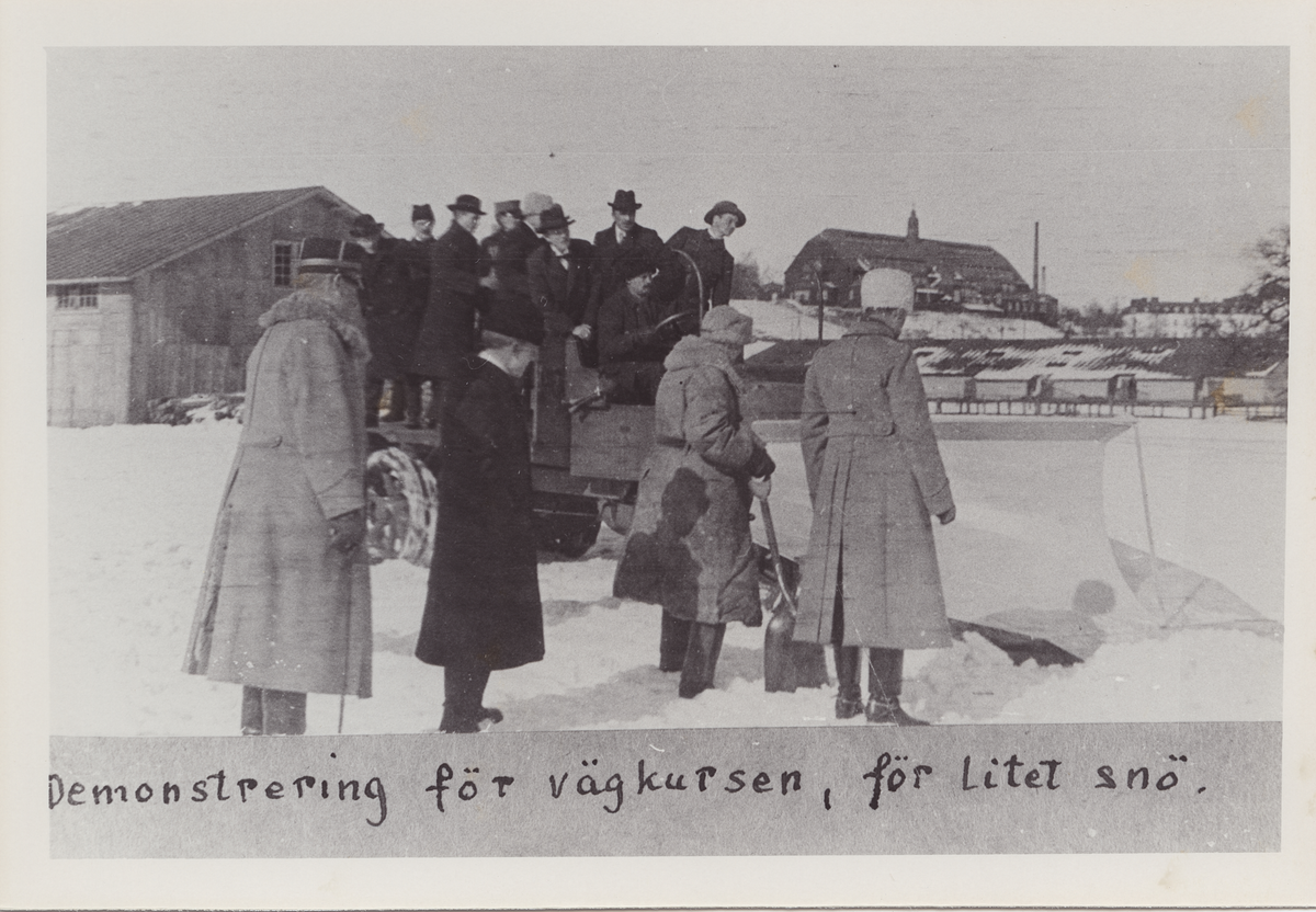 Snöröjning 1916: Demonstration för vägkurs, för lite snö.