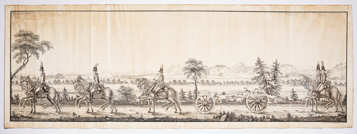 Ritning föreställande ridande artilleri.