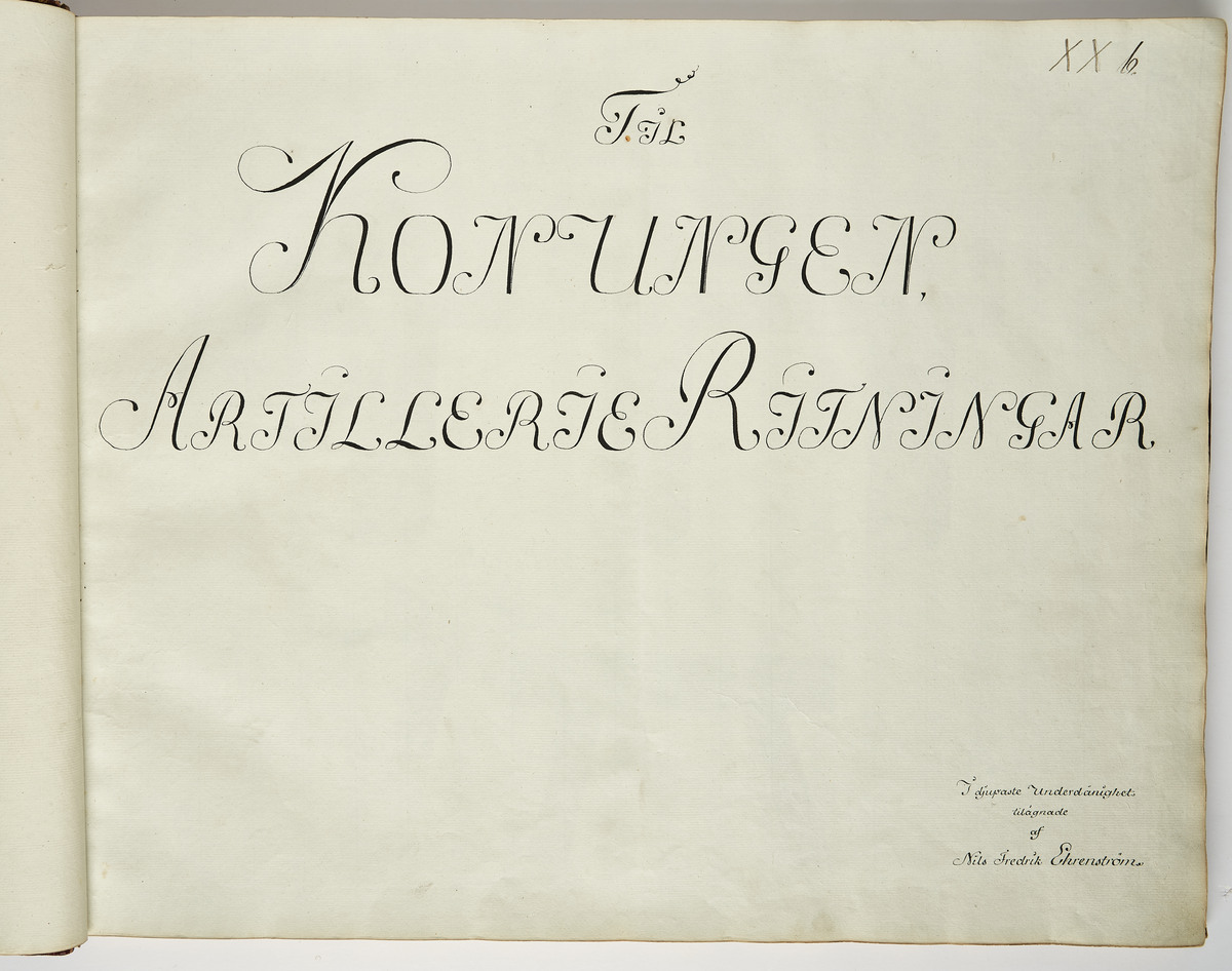 Titelsida för ritningssamlingen med artillerirelaterade ritningar av Nils Fredrik Ehrenström.