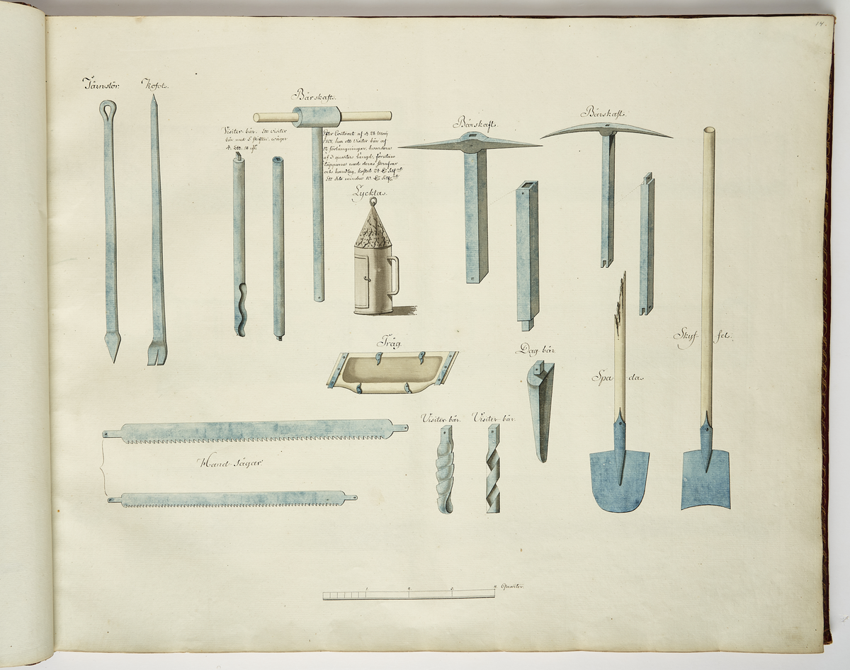 Mineurverktyg, ritning av Nils Fredrik Ehrenström.