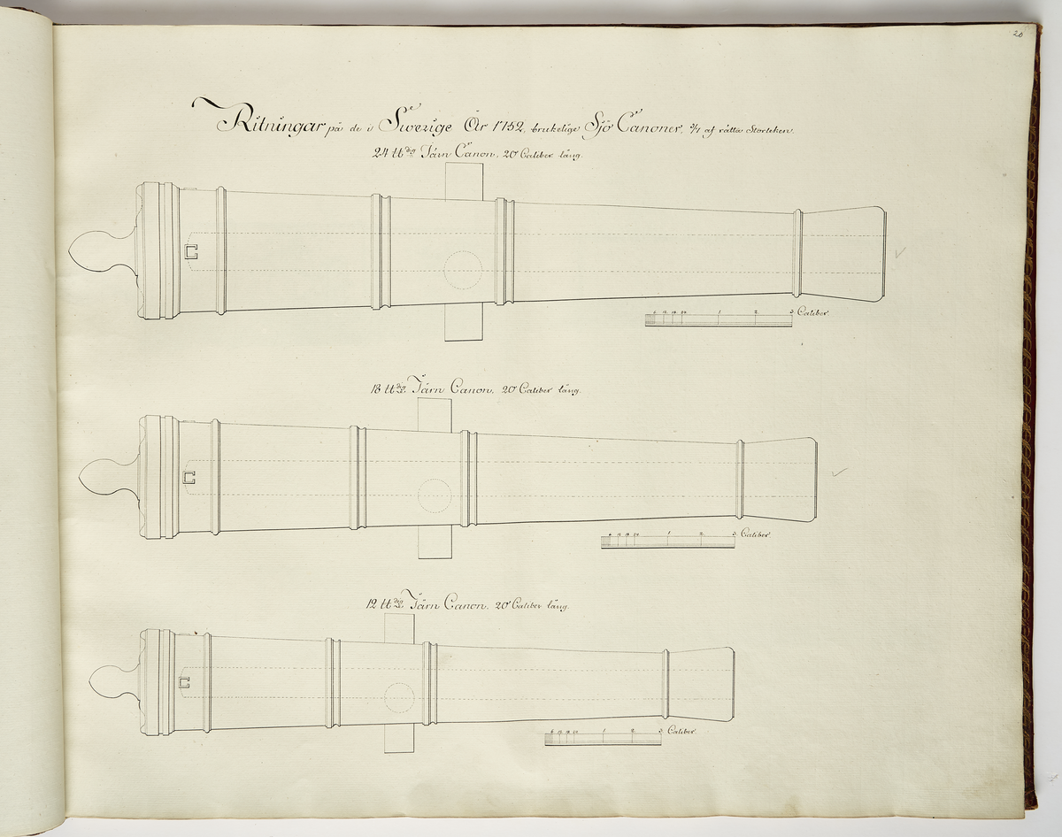 24-pundig, 18-pundig och 12-pundig kanon, ritning av Nils Fredrik Ehrenström.
