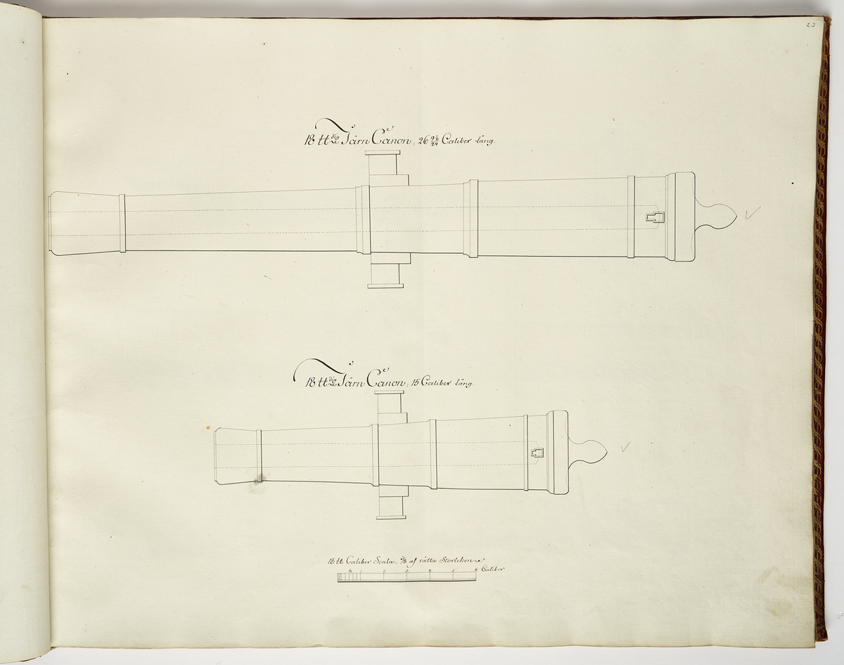 18-pundiga kanoner, ritning av Nils Fredrik Ehrenström.