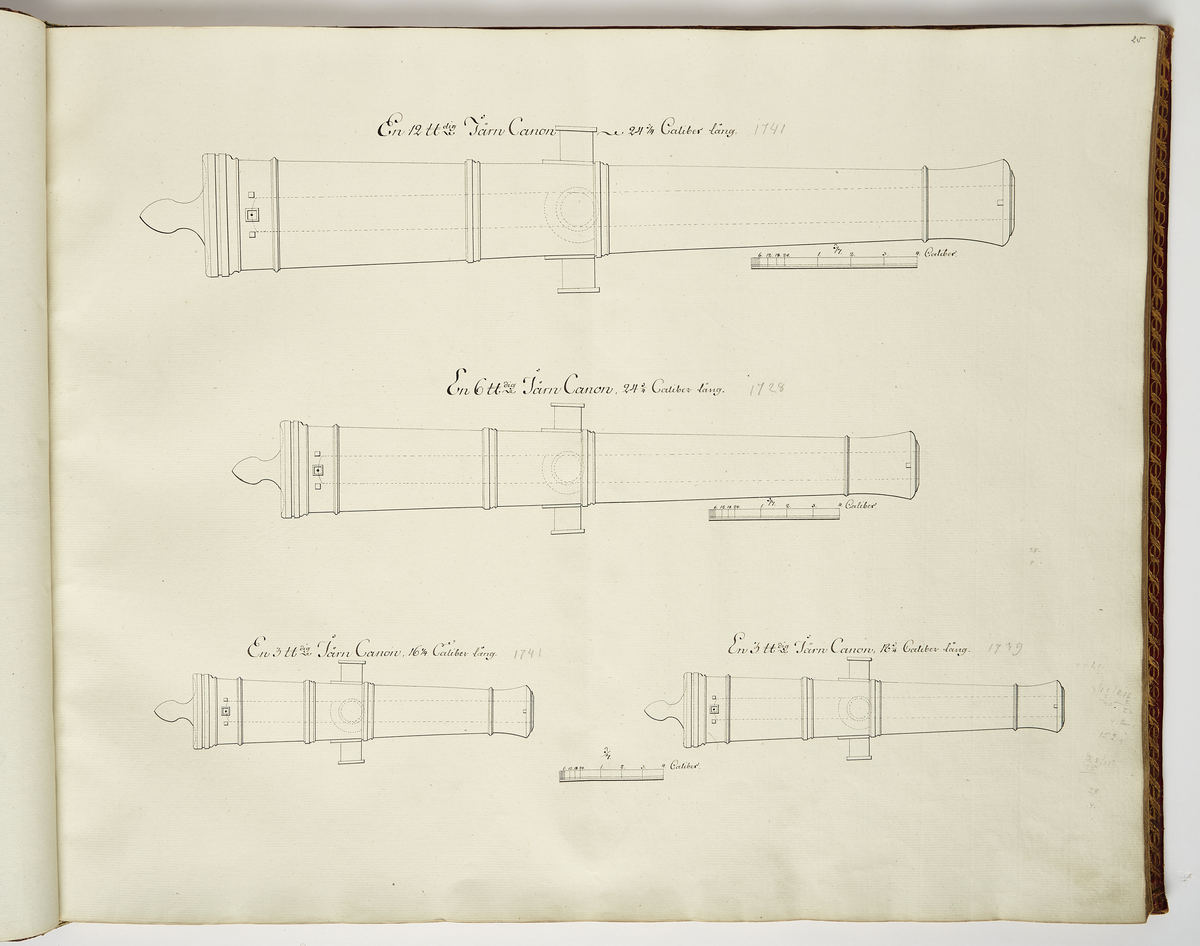 12-pundig, 6-pundig och 3-pundig kanon, ritning av Nils Fredrik Ehrenström.