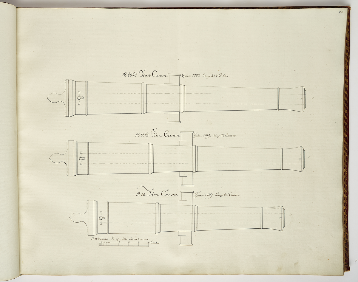 Titel: 12-pundiga kanoner, ritning av Nils Fredrik Ehrenström.