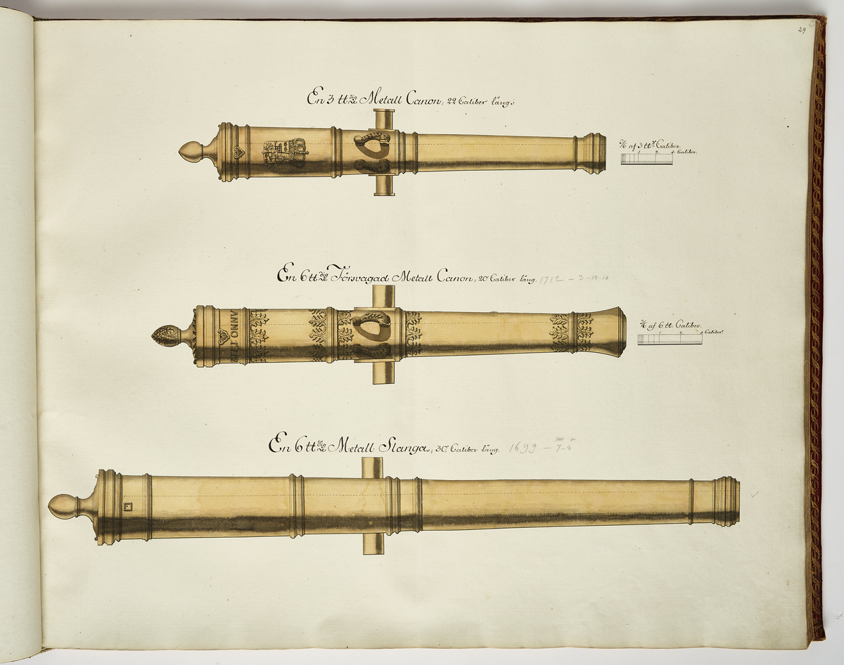 6-pundig och 3-pundig kanon, ritning av Nils Fredrik Ehrenström.