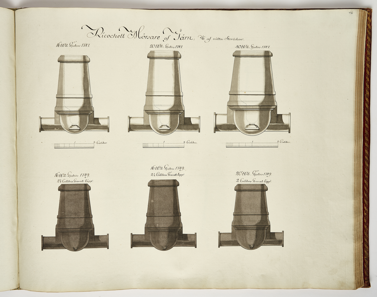 16-pundig, 20-pundig och 40-pundig mörsare, ritning av Nils Fredrik Ehrenström.