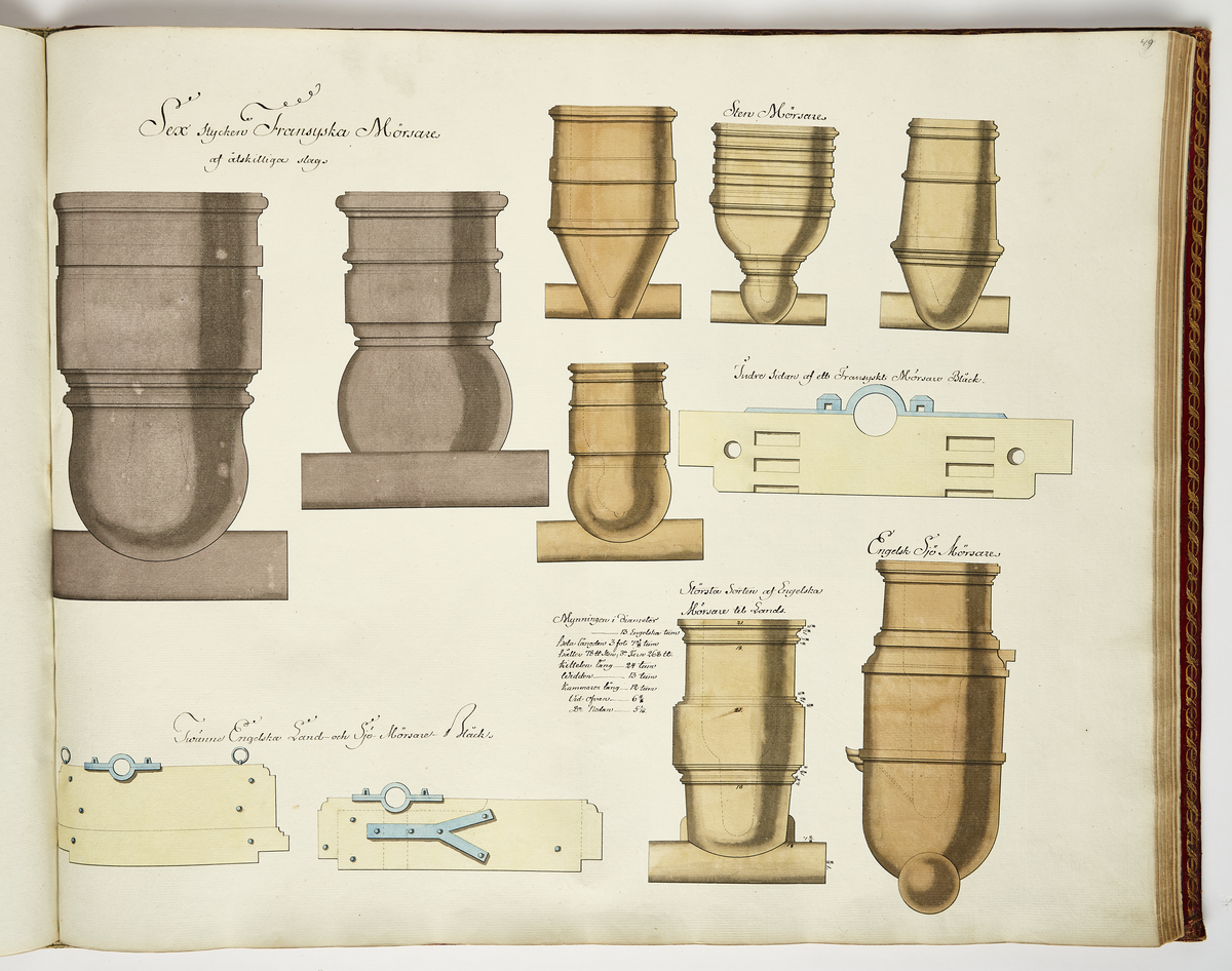 Franska och engelska mörsare, ritning av Nils Fredrik Ehrenström.